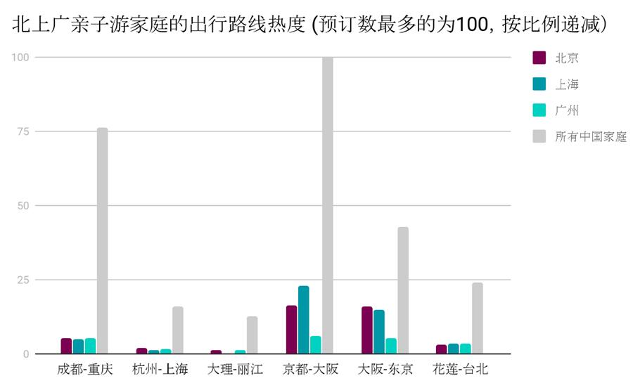 不少中国家庭偏好多个目的地出行,成都-重庆、京都-大阪分别成为中国亲子游家庭在国内和出境旅游时的首选路线,遥遥领先于其他路线,而且中国家庭在这两条路线上的平均停留时间都超过了 5 天。