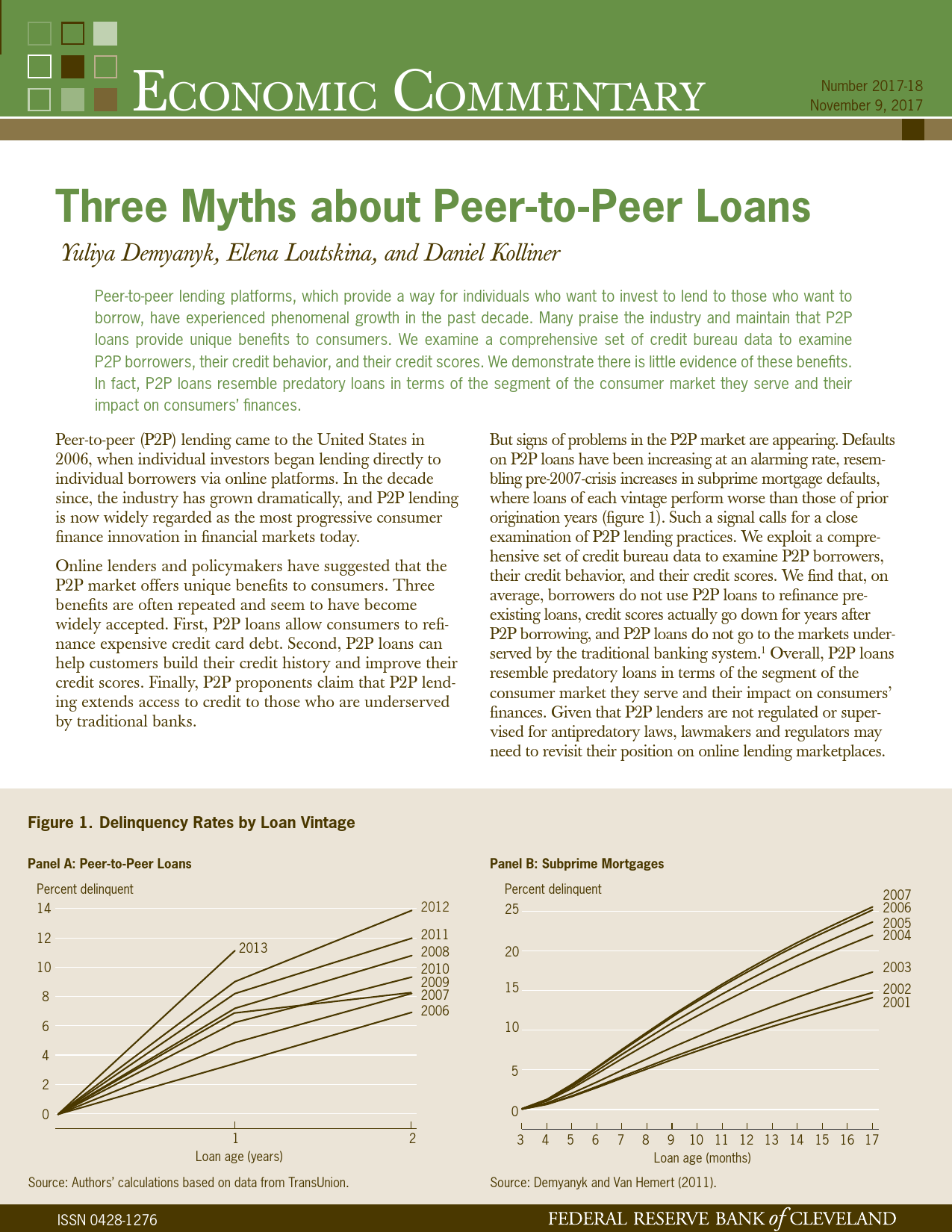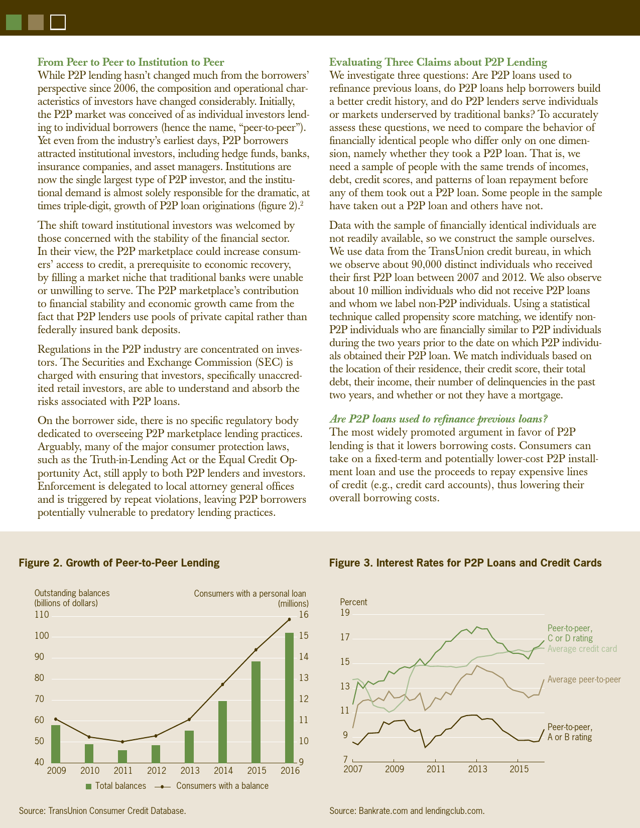 美联储克利夫兰银行的最新报告认为,P2P类似于掠夺性贷款,并通过数据分析证伪了P2P的三大神话:P2P让消费者能够为信用卡债务重新融资;P2P可以帮助客户提高信用评分;P2P将获得信贷的机会扩大到那些传统银行服务不足的人。