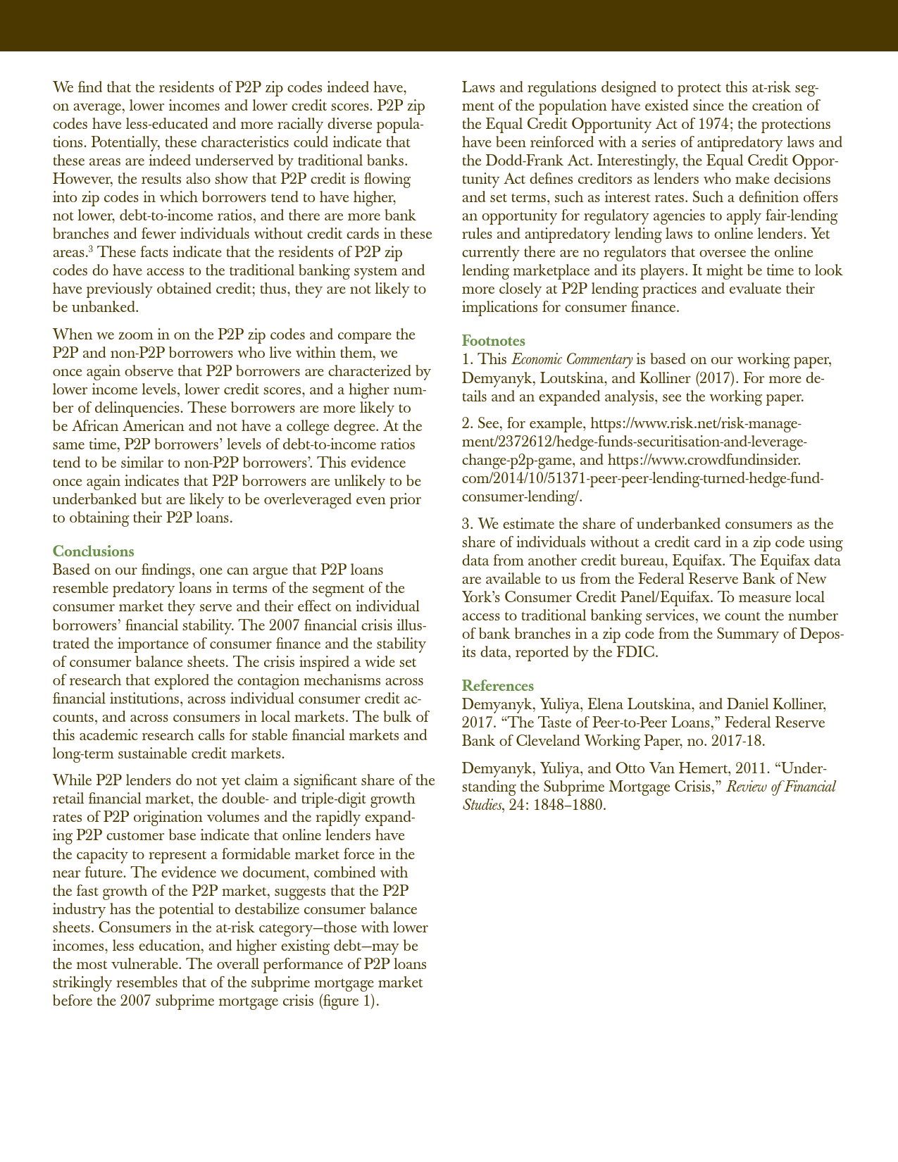总体上,P2P贷款就其所服务的消费市场领域以及其对消费者财务的影响而言与掠夺性贷款类似。鉴于P2P借贷人不受反掠夺法律的监管或监督,立法者和监管者可能需要重新审视他们对网络借贷市场的立场。