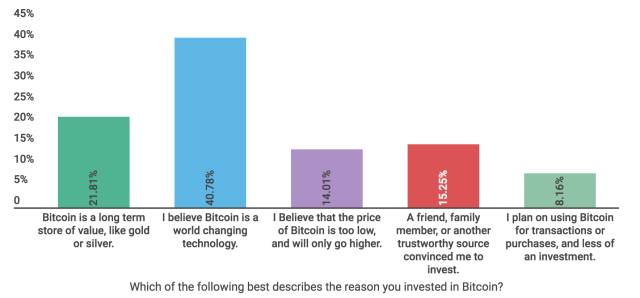 与此同时,有16%的受访者属于纯粹的投机者,或者是计划持有不到一年的投机者,只是希望在这股暴涨浪潮中狠赚一笔,随后离开。