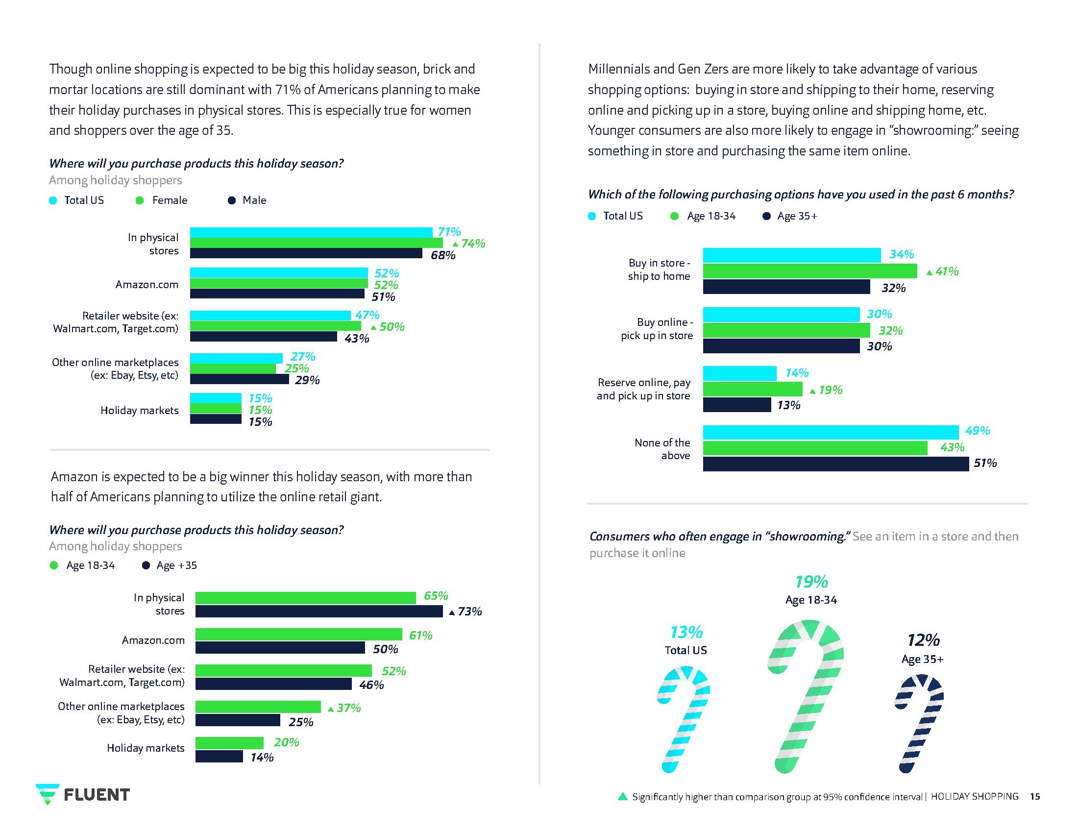 黑色星期五仍然是最重要的购物季活动。即使是那些网络购物消费者,也有超过一半更喜欢在实体店(55%),71%计划在实体店进行假日购物。这使得实体店成为最受欢迎的假日购物采购渠道。