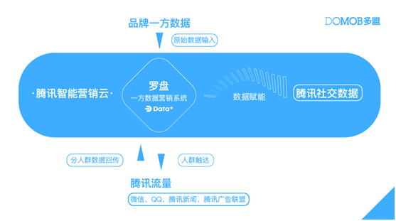 在中国的互联网生态中,拥有数据和流量的各大媒体相对封闭,品牌的全链路营销、用户生命周期管理等理念,也仅存于美好的设想中。多盟DATA+智能营销平台自从今年4月在GMIC上发布以来,一直与腾讯有着密切合作。DATA+平台下的一方数据营销系统“罗盘”基于腾讯智能营销云通过Marketing API,成功将品牌自有数据和腾讯社交数据及流量结合起来。品牌方可以通过系统使用腾讯社交数据来对自有的数据进行洞察、扩展、过滤等功能,同时可以进行定向投放和分人群回收分析数据。