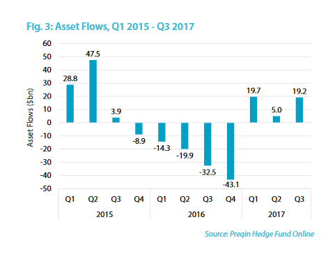 第三季度对冲基金流入推动2017年流入记录达到439亿美元,这对于对冲基金经理来说是利好消息。