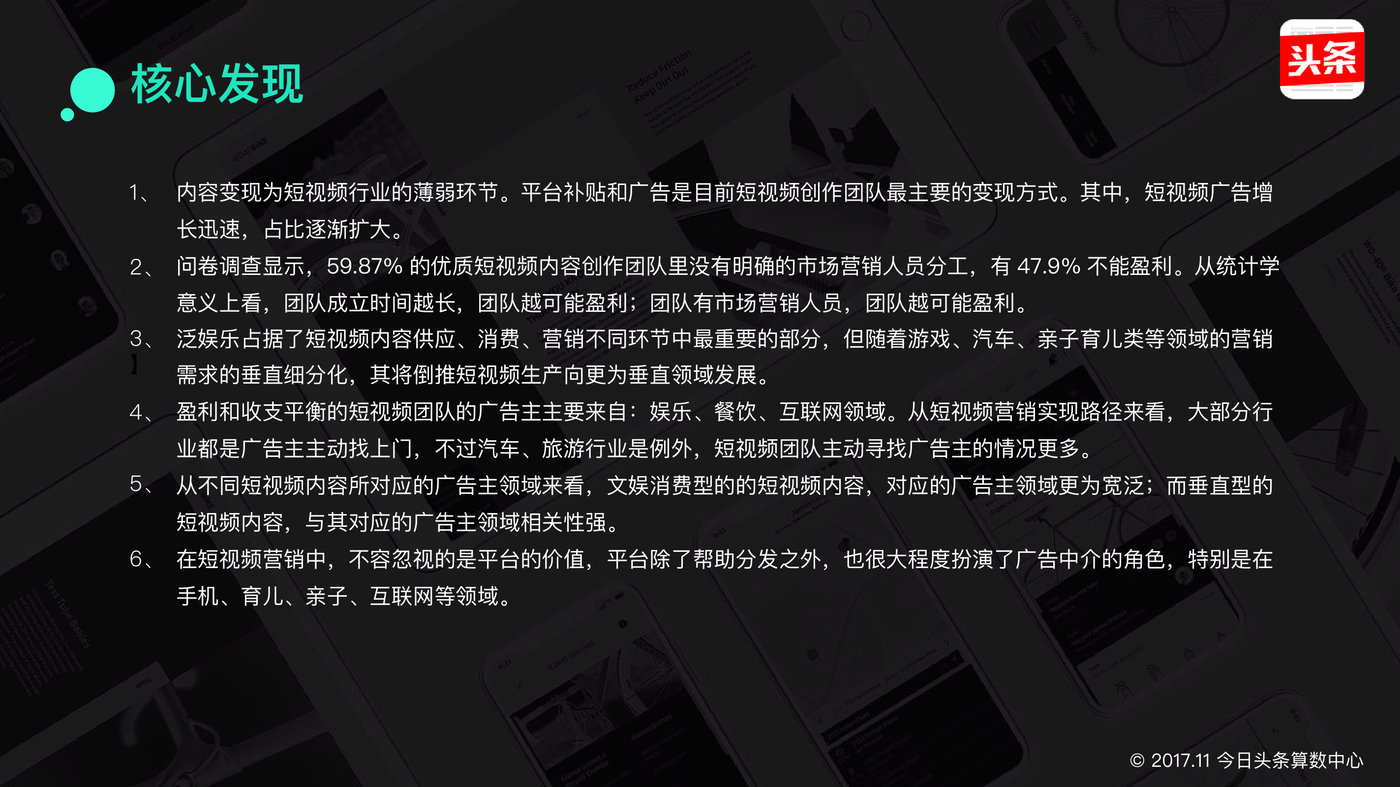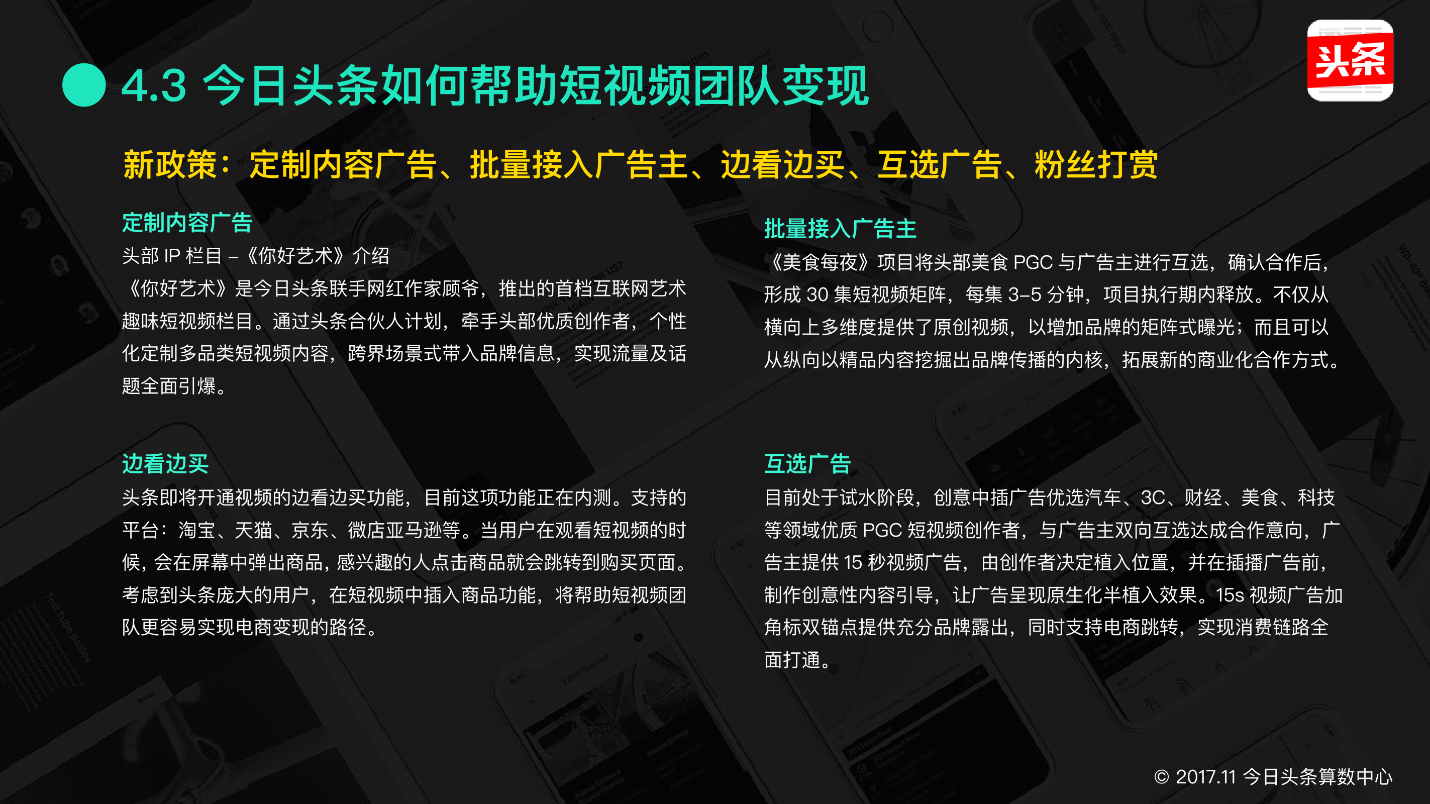 当下,网红云集、竞争激烈,但相信在有强烈尝新意愿的广告主和今日头条等优质平台扶持之下,短视频创业者无疑处在最好的时代。