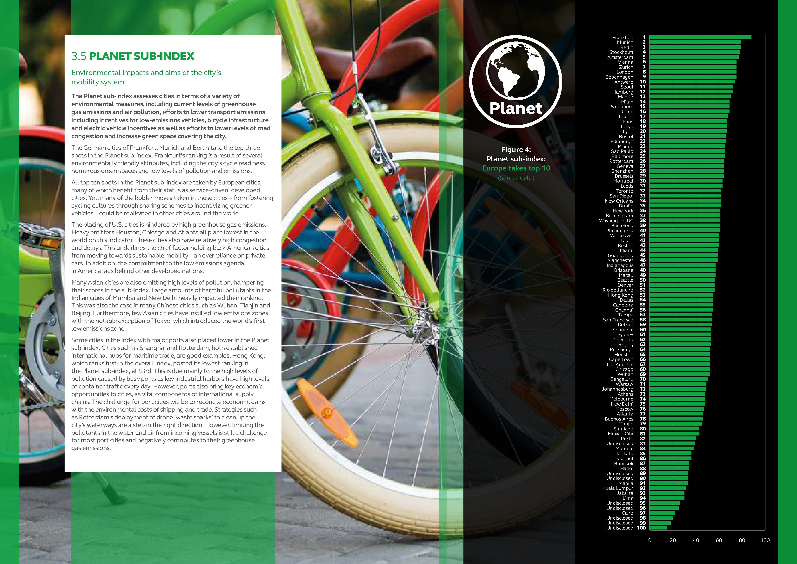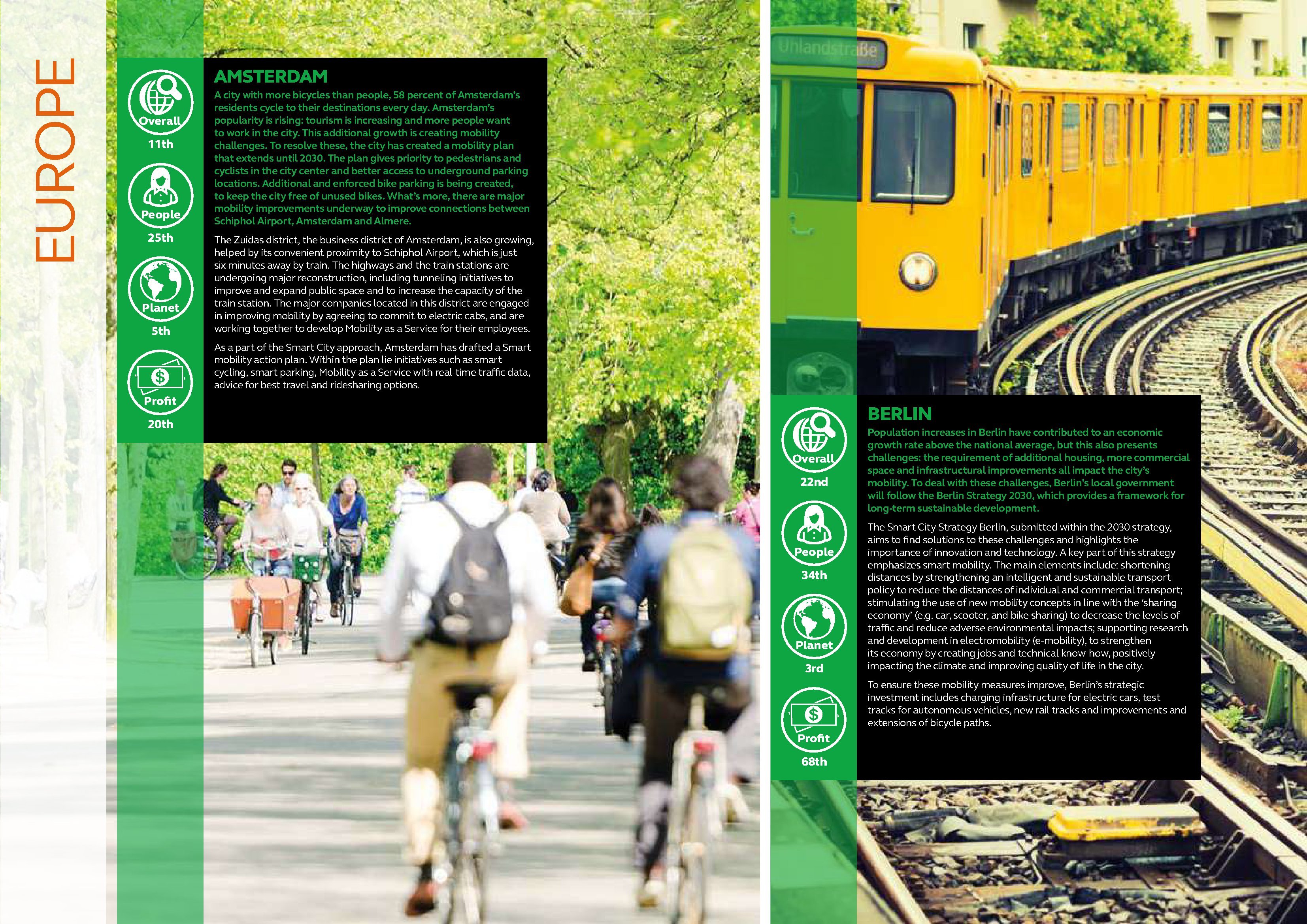欧洲:排名前十的城市大多来自欧洲,得益于早期工业化的发展,通过优秀的自行车基础设施,致力于绿色技术和电动汽车的应用,以及推动低排放议程等。