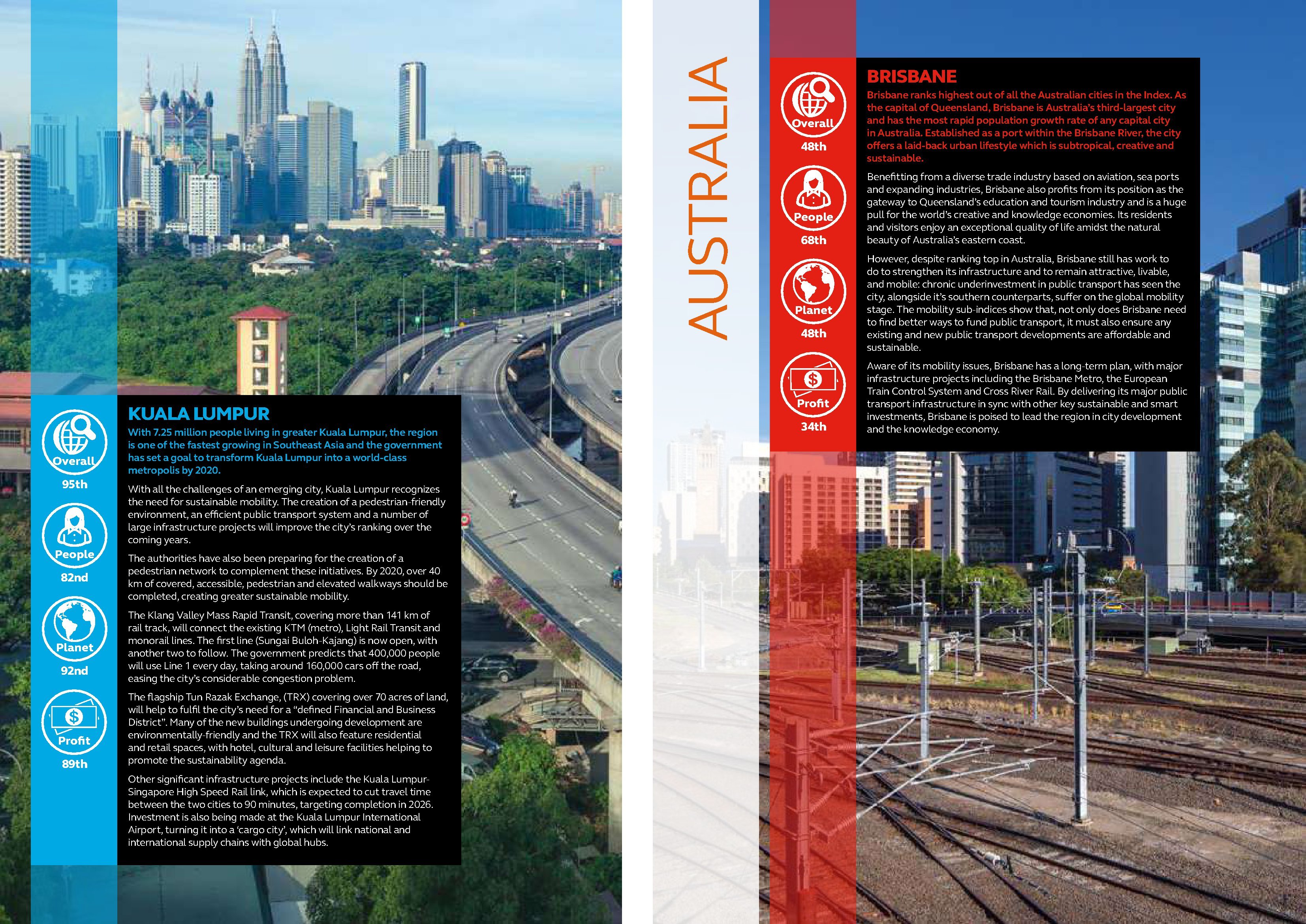 澳大利亚:在澳大利亚的城市,公共交通利用率以及骑车或徒步上班的比例都很低,因此没有城市出现在前五十排名。