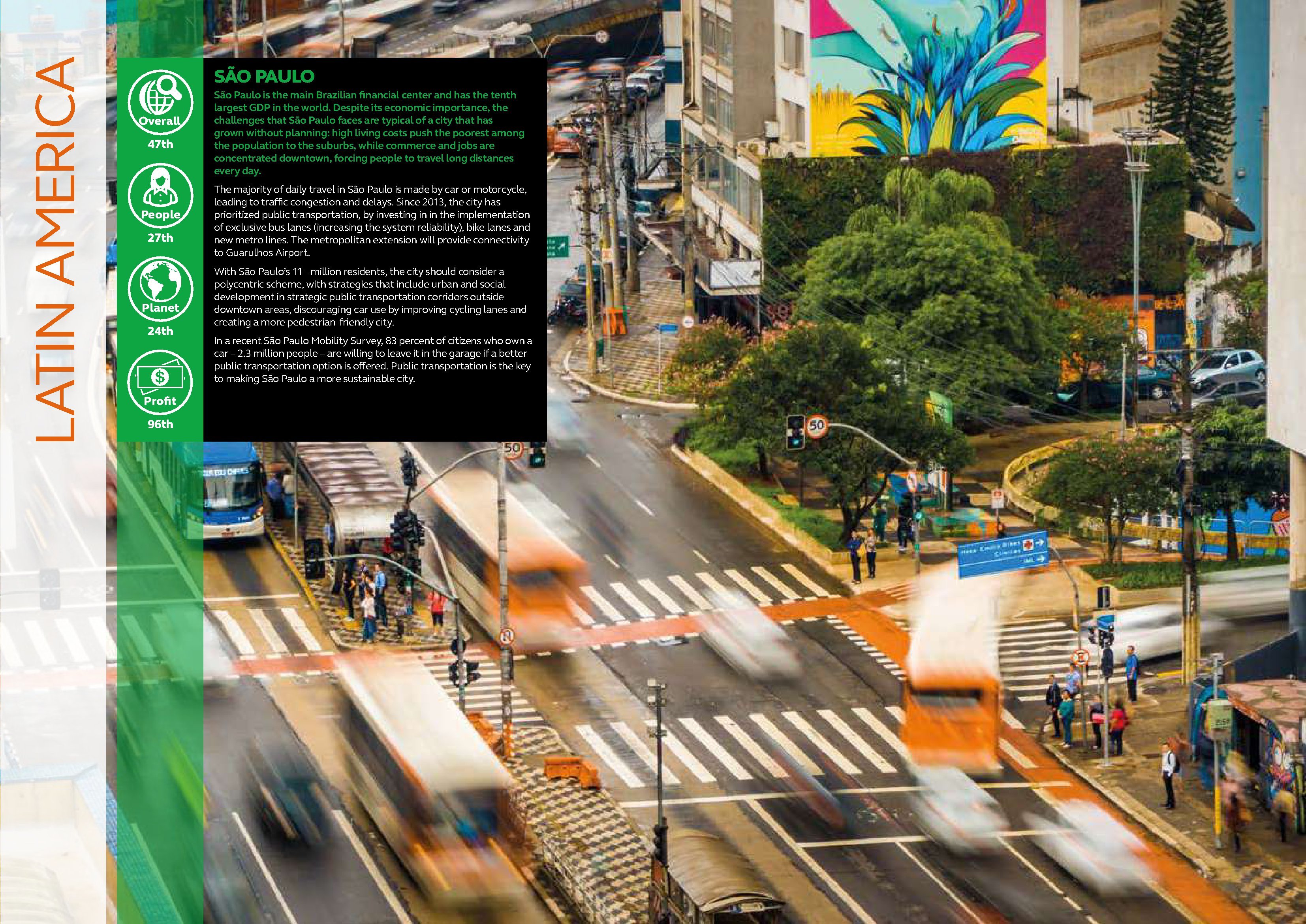 拉丁美洲:巴西人口最多的城市圣保罗是唯一排在前50位的拉丁美洲城市而在公共交通方面,利马和墨西哥城则是表现最好的。