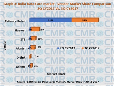 根据CMR的最新数据,第三季度,印度数据卡出货量110万单位,下降27%。
