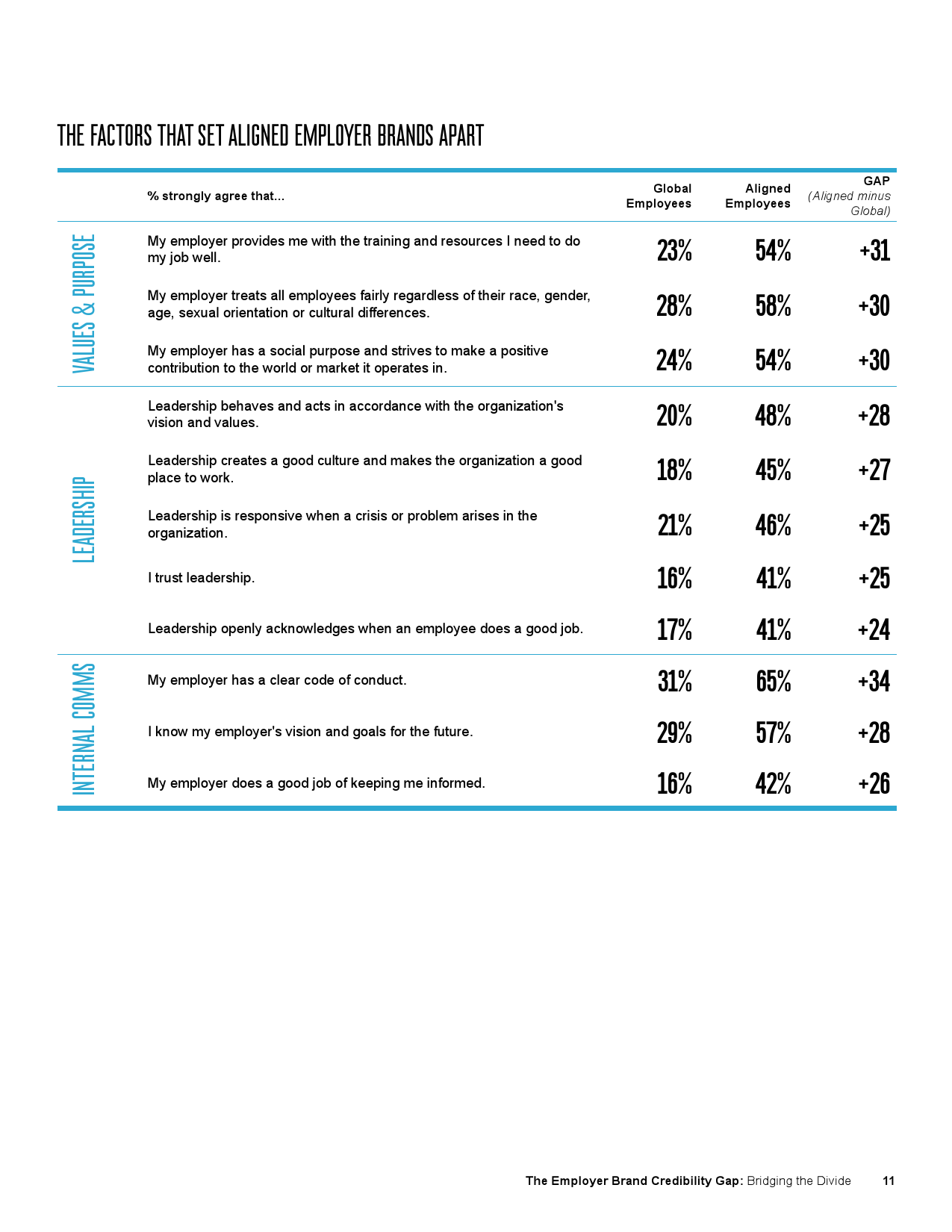 全球范围内,根据对雇主品牌和员工体验匹配佳的企业和普通企业比较,我们发现,前者…….