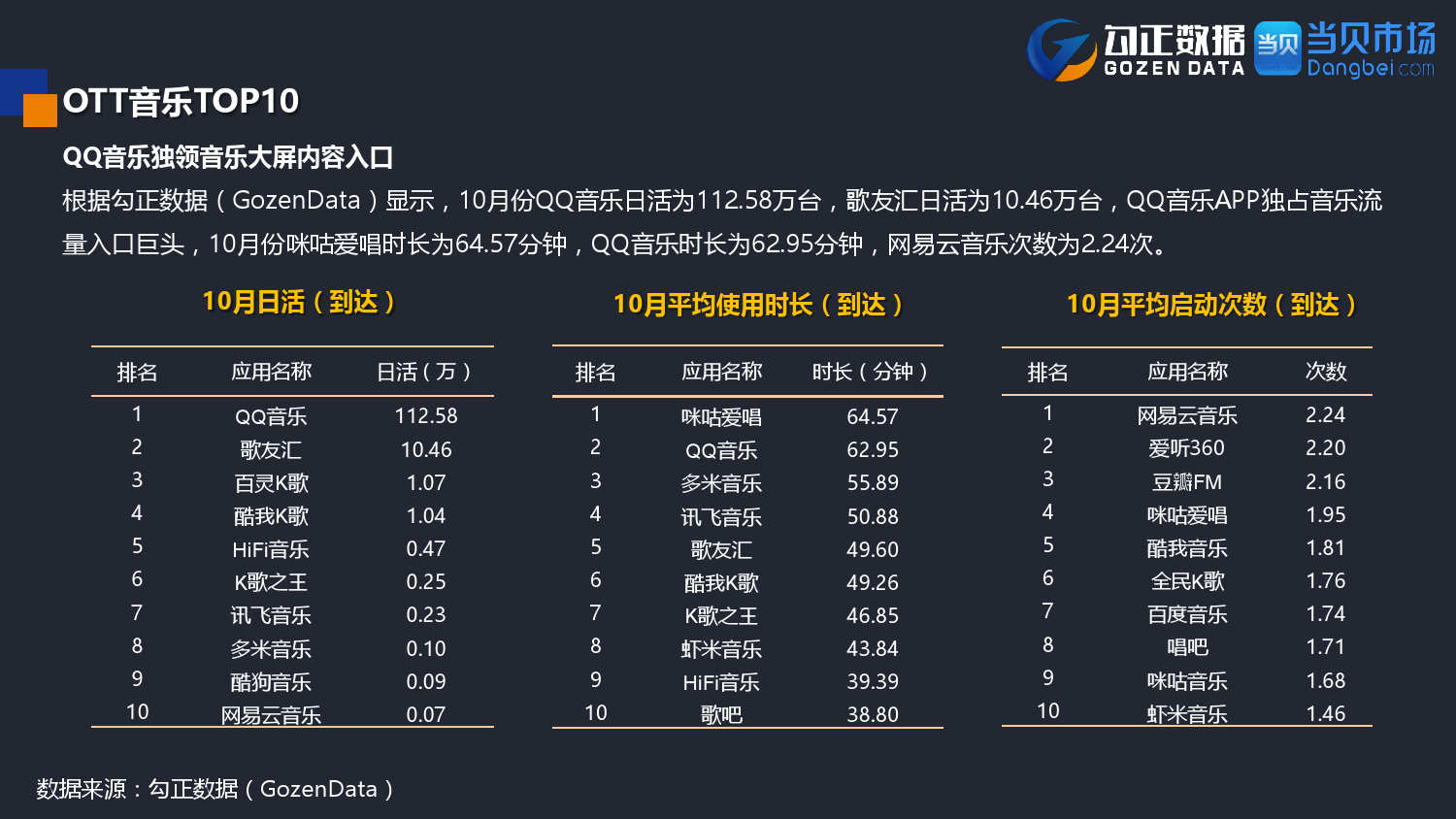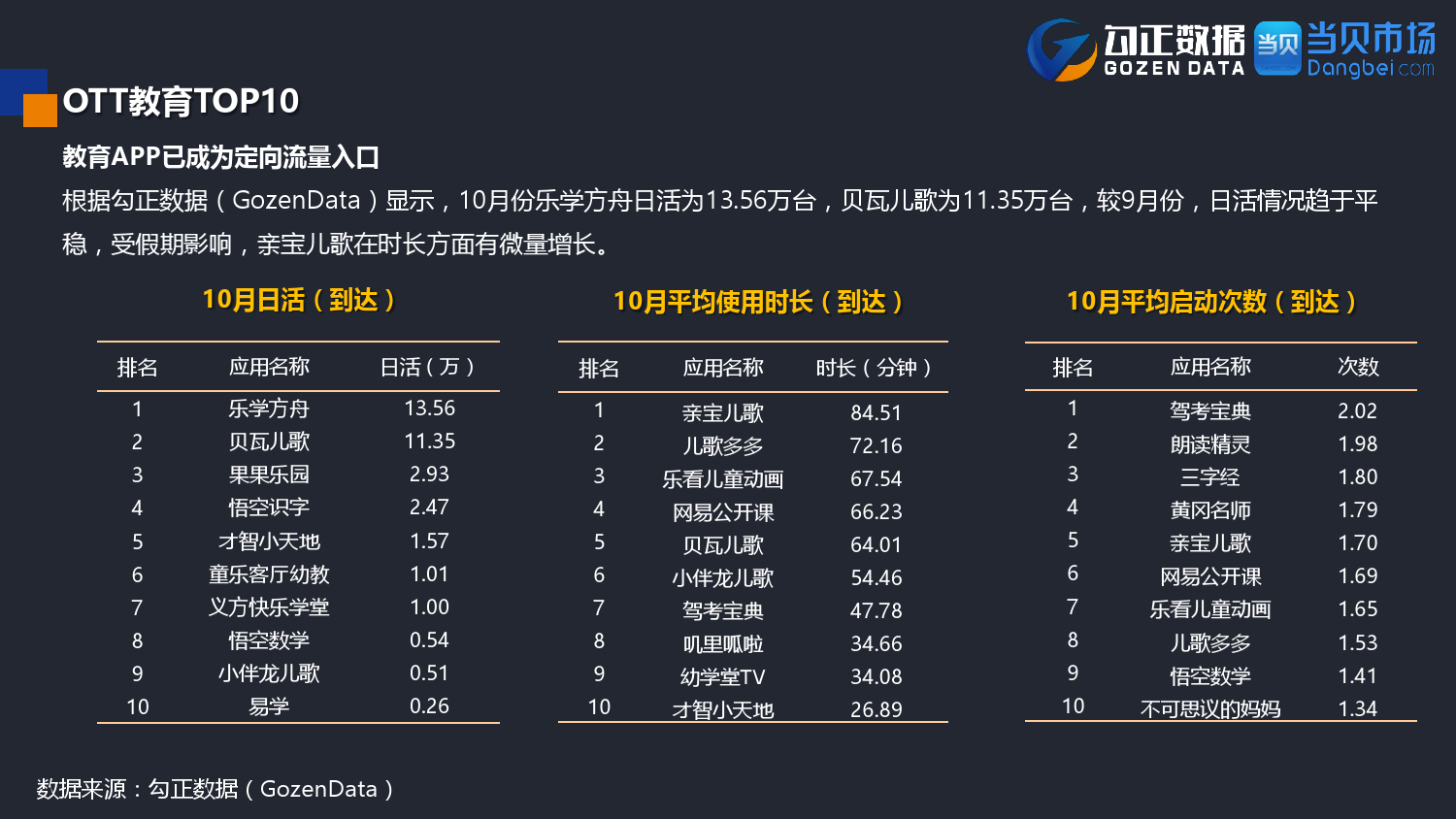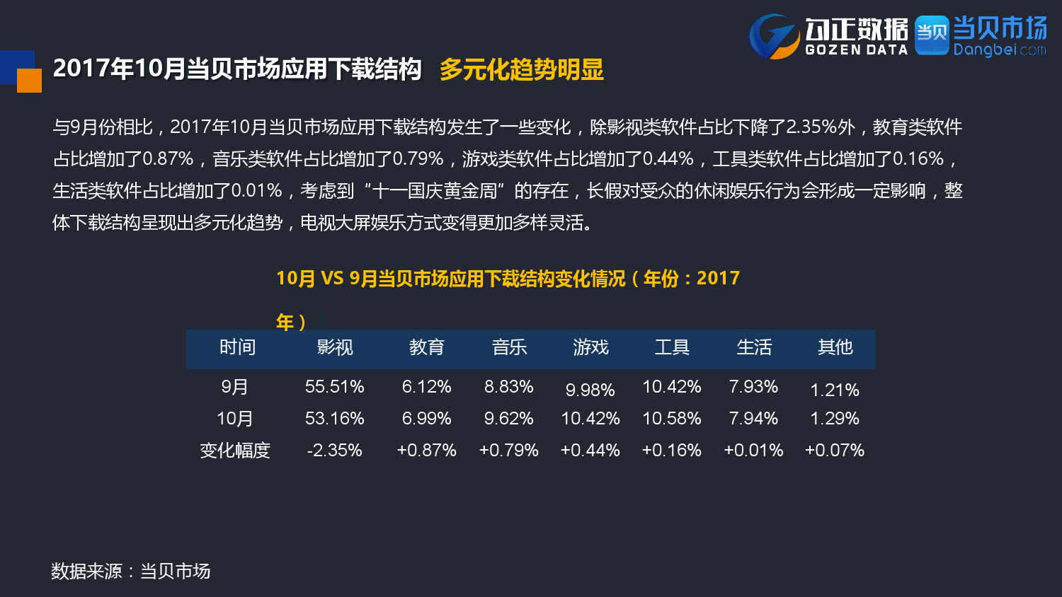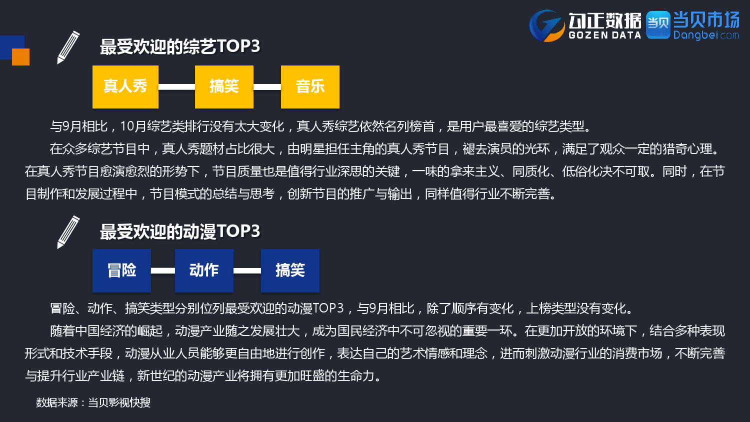 勾正数据&当贝网络:2017年10月OTT行业报告 PDF版本将同步到199IT交流群,199IT感谢您的支持! 更多阅读:勾正数据:2017年OTT行业发展报告勾正数据:2019年OTT大屏家庭春节营销报告勾正数据:2020智慧屏行业发展白皮书勾正数据:2020年8月智能电视大数据月度报告勾正数据:2020上半年智慧屏行业发展白皮书勾正数据:2020年7月智能电视大数据报告勾正数据:2019上半年家庭智能大屏产业生态报告勾正数据:2019年5月智能电视大数据报告勾正数据:2019年4月智能电视大数据报告勾正数据:2018年5月智能电视大数据报告勾正数据:2018年Q1大屏洞察报告勾正数据:2017年8月智能电视大数据报告勾正数据:2017年上半年智能电视大数据报告勾正数据:2019年8月5-11日智能电视大数据周报奥维互娱:2020年国庆假期OTT大屏用户行为报告