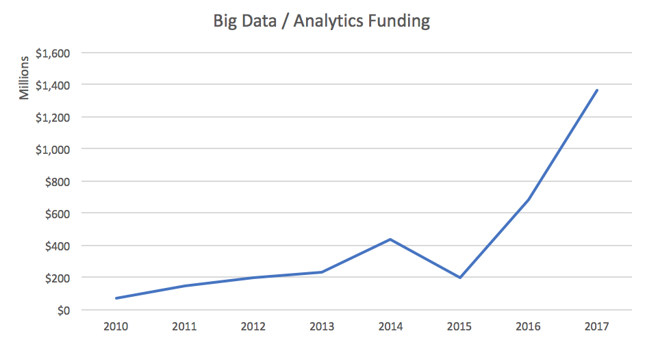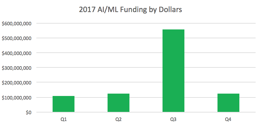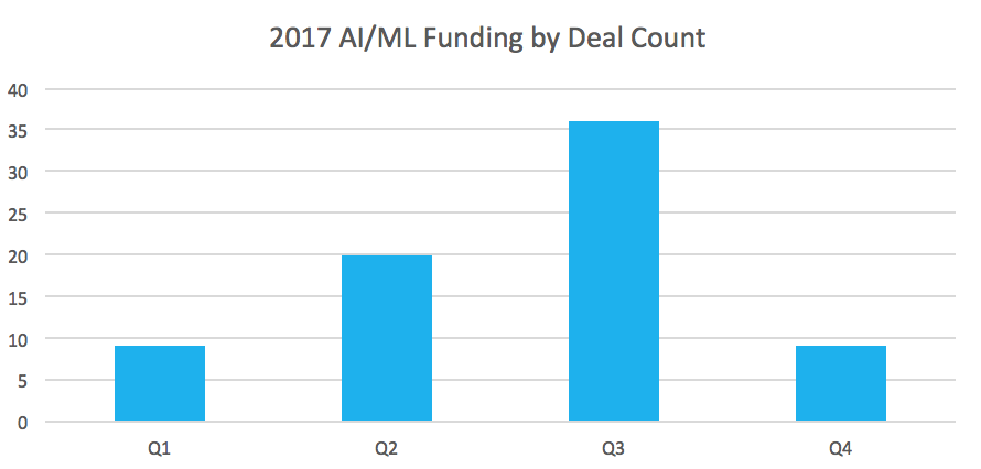 2017年,AI和ML公司已经占到了交易量的12%,约占投资的8%。令人鼓舞的是,我们看到在这个空间上的资金增长趋势。