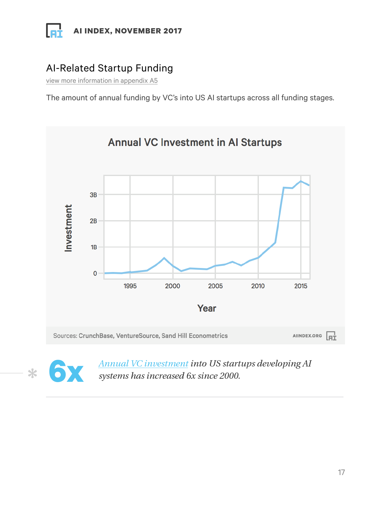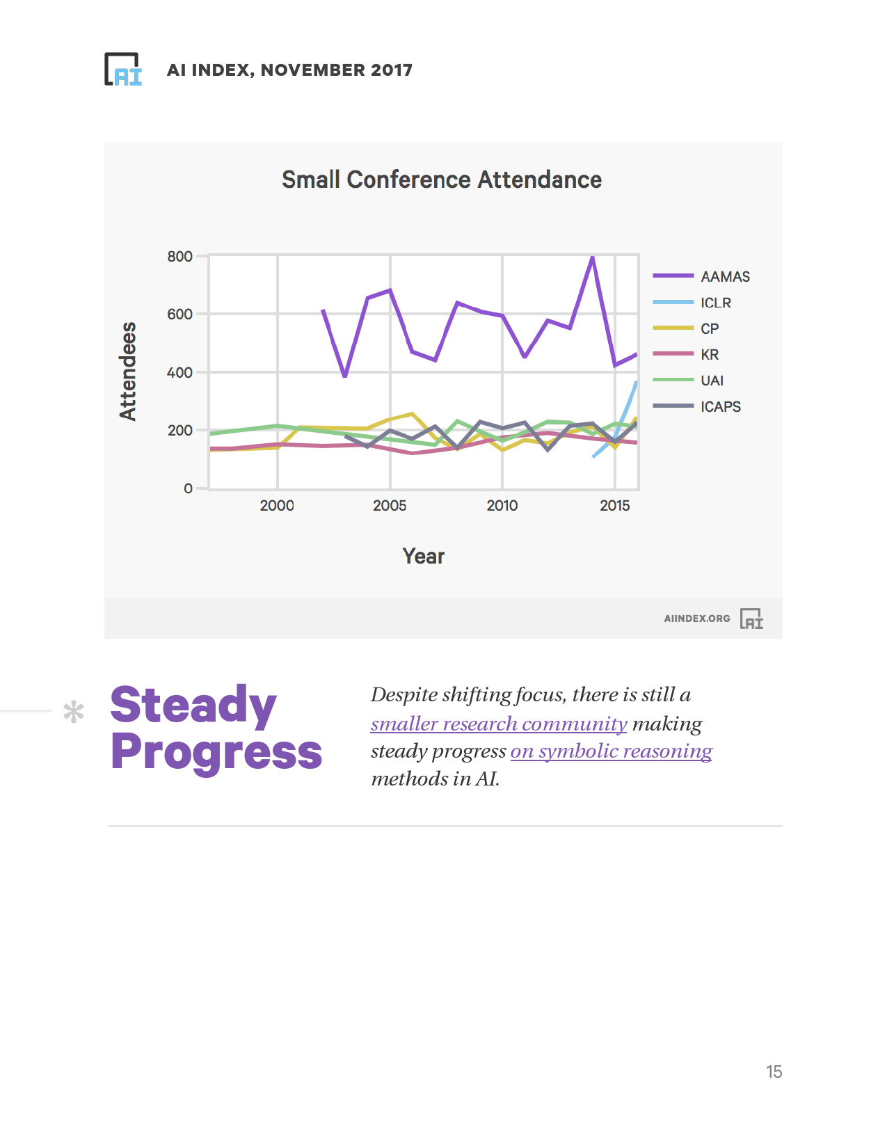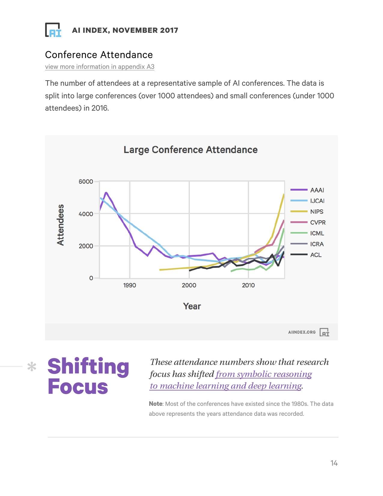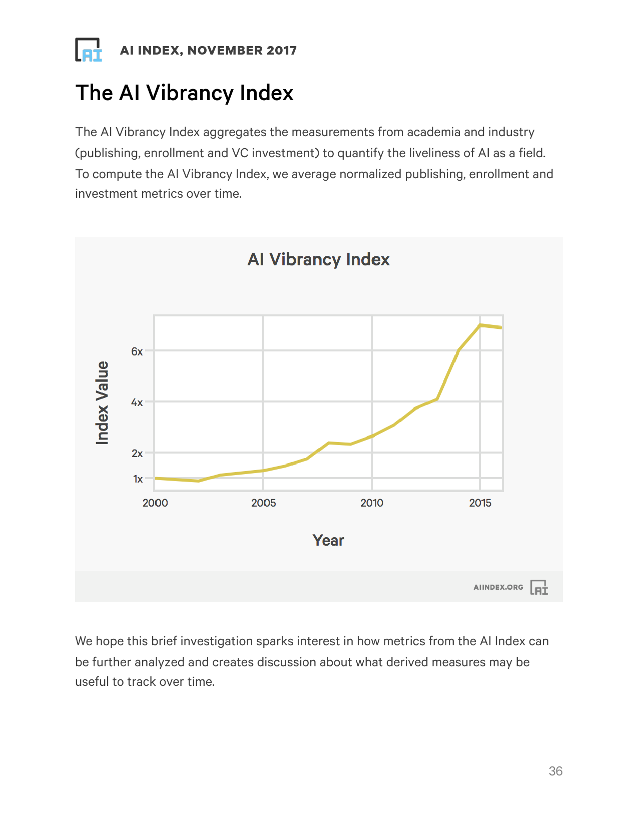 斯坦福:2017年人工智能指数报告 近日,斯坦福“人工智能百年(AI100)”专家小组(非盈利性项目AI Index)发起了一项AI指数报告,追踪学术界、产业界、开源软件和公共兴趣范畴的18个分立的视角评估人工智能活跃度,盘点计算机视觉、自然语言理解等技术发展现状(机器类人程度),从专家视角解读人工智能创业和投资的急剧增加,探讨相关领域的深入发展。 PDF版本将同步到199IT交流群,199IT感谢您的支持! 更多阅读:斯坦福:2018年度人工智能AI指数报告斯坦福:2025年人工智能AI指数报告斯坦福大学:2022年人工智能指数 北邮、清华、字节表现抢眼斯坦福:2023年人工智能(AI)指数报告(386页)Accenture:调查显示企业不愿花钱对员工进行人工智能培训斯坦福:2021年全球AI指数报告 中国论文引用数超美国对比两年斯坦福AI报告:32张图表带你全盘掌握行业发展斯坦福年度《人工智能指数报告》的十条重要结论WIPO:2018全球创新指数报告Veritas:2017数据基因指数报告GPCI:2017年全球城市实力指数报告凯络:2020品牌情商指数报告联合国贸发会:2018年非洲B2C电子商务指数报告Lewis:2018年全球营销参与指数报告2022年第一季度中国小微经营者调查报告及二季度信心指数报告