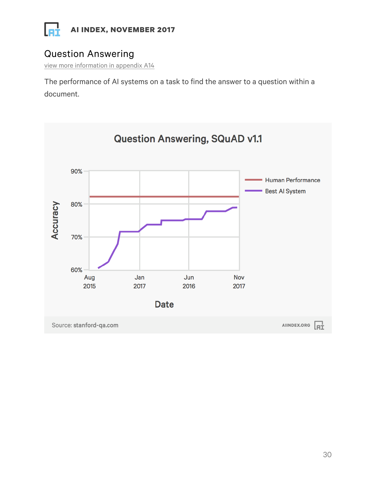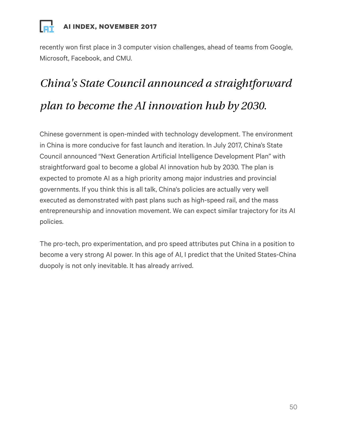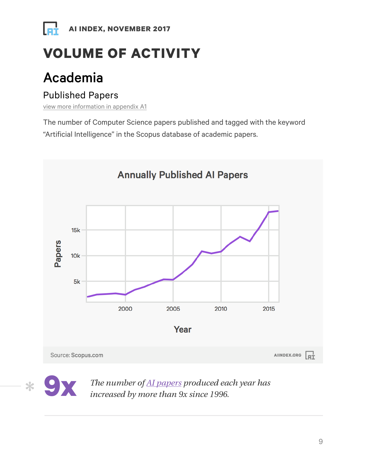 斯坦福:2017年人工智能指数报告 近日,斯坦福“人工智能百年(AI100)”专家小组(非盈利性项目AI Index)发起了一项AI指数报告,追踪学术界、产业界、开源软件和公共兴趣范畴的18个分立的视角评估人工智能活跃度,盘点计算机视觉、自然语言理解等技术发展现状(机器类人程度),从专家视角解读人工智能创业和投资的急剧增加,探讨相关领域的深入发展。 PDF版本将同步到199IT交流群,199IT感谢您的支持! 更多阅读:斯坦福:2018年度人工智能AI指数报告斯坦福:2025年人工智能AI指数报告斯坦福大学:2022年人工智能指数 北邮、清华、字节表现抢眼斯坦福:2023年人工智能(AI)指数报告(386页)Accenture:调查显示企业不愿花钱对员工进行人工智能培训斯坦福:2021年全球AI指数报告 中国论文引用数超美国对比两年斯坦福AI报告:32张图表带你全盘掌握行业发展斯坦福年度《人工智能指数报告》的十条重要结论WIPO:2018全球创新指数报告Veritas:2017数据基因指数报告GPCI:2017年全球城市实力指数报告凯络:2020品牌情商指数报告联合国贸发会:2018年非洲B2C电子商务指数报告Lewis:2018年全球营销参与指数报告2022年第一季度中国小微经营者调查报告及二季度信心指数报告