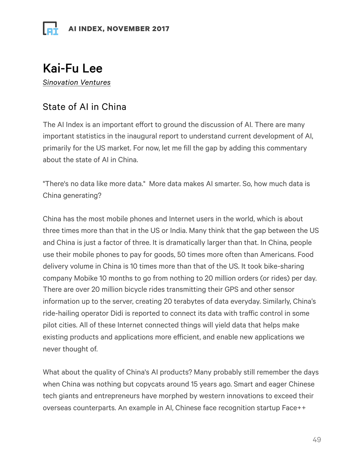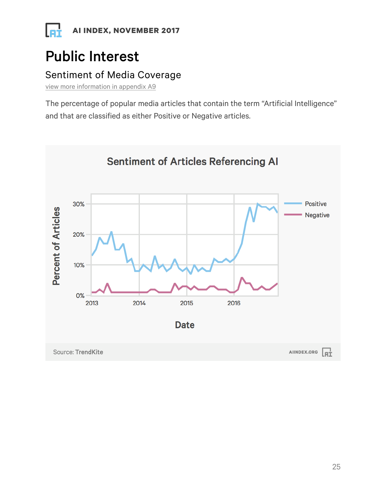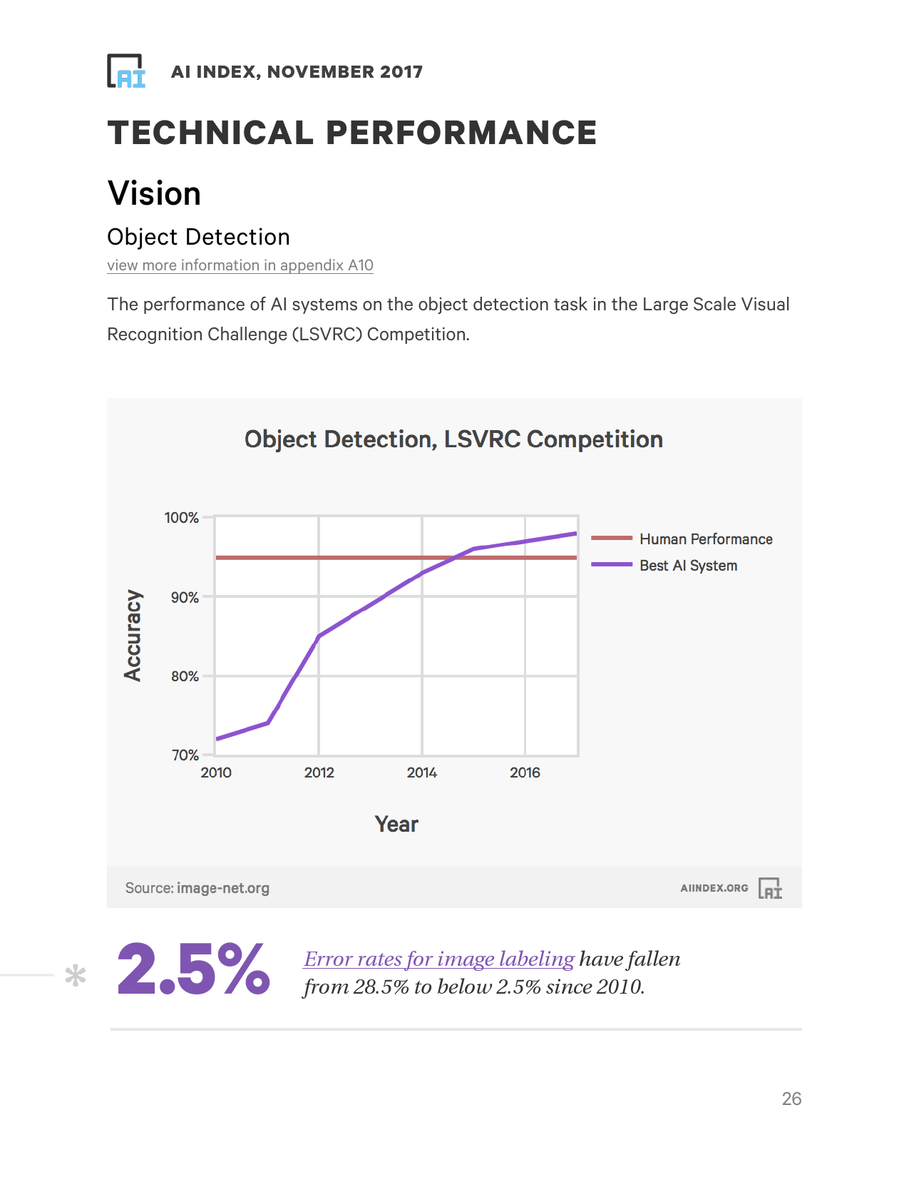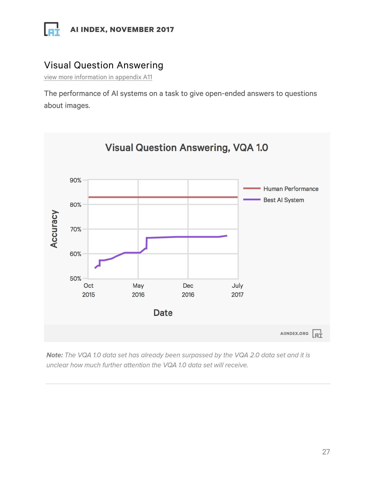 斯坦福:2017年人工智能指数报告 近日,斯坦福“人工智能百年(AI100)”专家小组(非盈利性项目AI Index)发起了一项AI指数报告,追踪学术界、产业界、开源软件和公共兴趣范畴的18个分立的视角评估人工智能活跃度,盘点计算机视觉、自然语言理解等技术发展现状(机器类人程度),从专家视角解读人工智能创业和投资的急剧增加,探讨相关领域的深入发展。 PDF版本将同步到199IT交流群,199IT感谢您的支持! 更多阅读:斯坦福:2018年度人工智能AI指数报告斯坦福:2025年人工智能AI指数报告斯坦福大学:2022年人工智能指数 北邮、清华、字节表现抢眼斯坦福:2023年人工智能(AI)指数报告(386页)Accenture:调查显示企业不愿花钱对员工进行人工智能培训斯坦福:2021年全球AI指数报告 中国论文引用数超美国对比两年斯坦福AI报告:32张图表带你全盘掌握行业发展斯坦福年度《人工智能指数报告》的十条重要结论WIPO:2018全球创新指数报告Veritas:2017数据基因指数报告GPCI:2017年全球城市实力指数报告凯络:2020品牌情商指数报告联合国贸发会:2018年非洲B2C电子商务指数报告Lewis:2018年全球营销参与指数报告2022年第一季度中国小微经营者调查报告及二季度信心指数报告