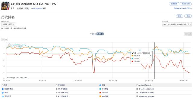 下图:《全民枪战》在印尼、泰国及马来西亚的 Google Play 商店收入表现出色
