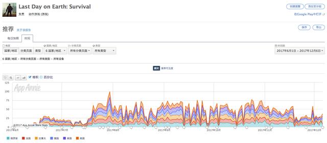 下图:《Last Day on Earth: Survival》上线以来,被 Google Play 在多个欧美市场多次推荐