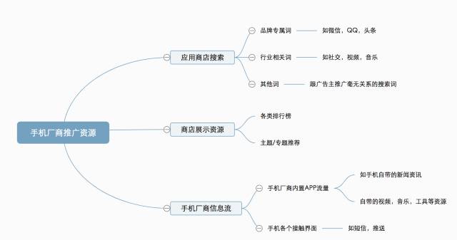 应用商店搜索和展示资源都在应用商店APP里面,手机厂商的信息流则包括手机厂商的其他广告位资源如手机厂商自带的浏览器,新闻资讯等APP上面的广告位。