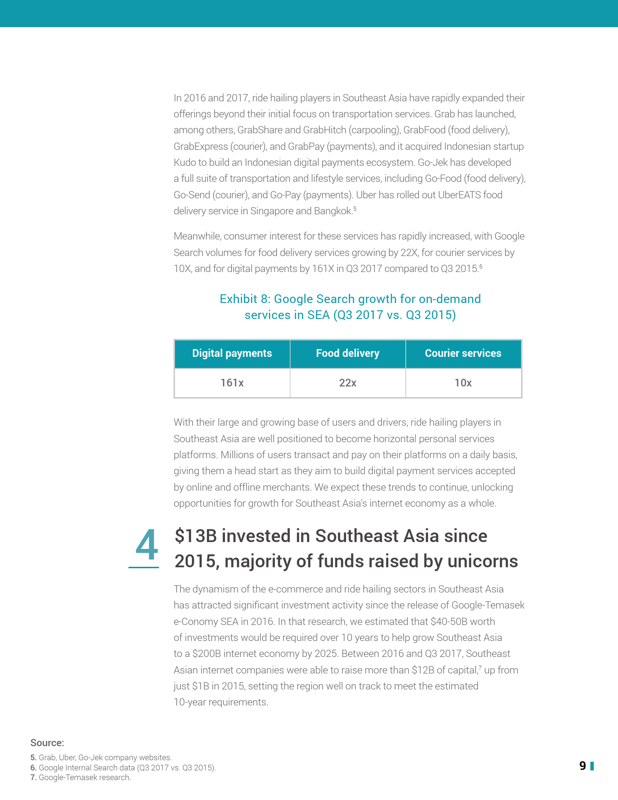 该报告称,像Grab和go-jek这样的公司已经将他们的产品扩展到消费者以外的领域,包括支付和生活方式服务,这也增加了他们对客户的吸引力。