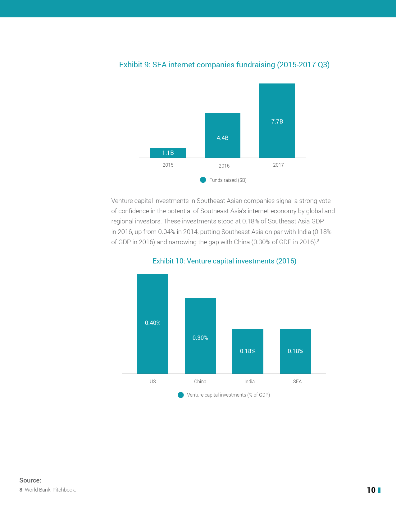 报告指出,从2016年到今年第三季度,东南亚互联网公司的吸引风投资本总额超过120亿美元,而2015年全年仅有10亿美元。