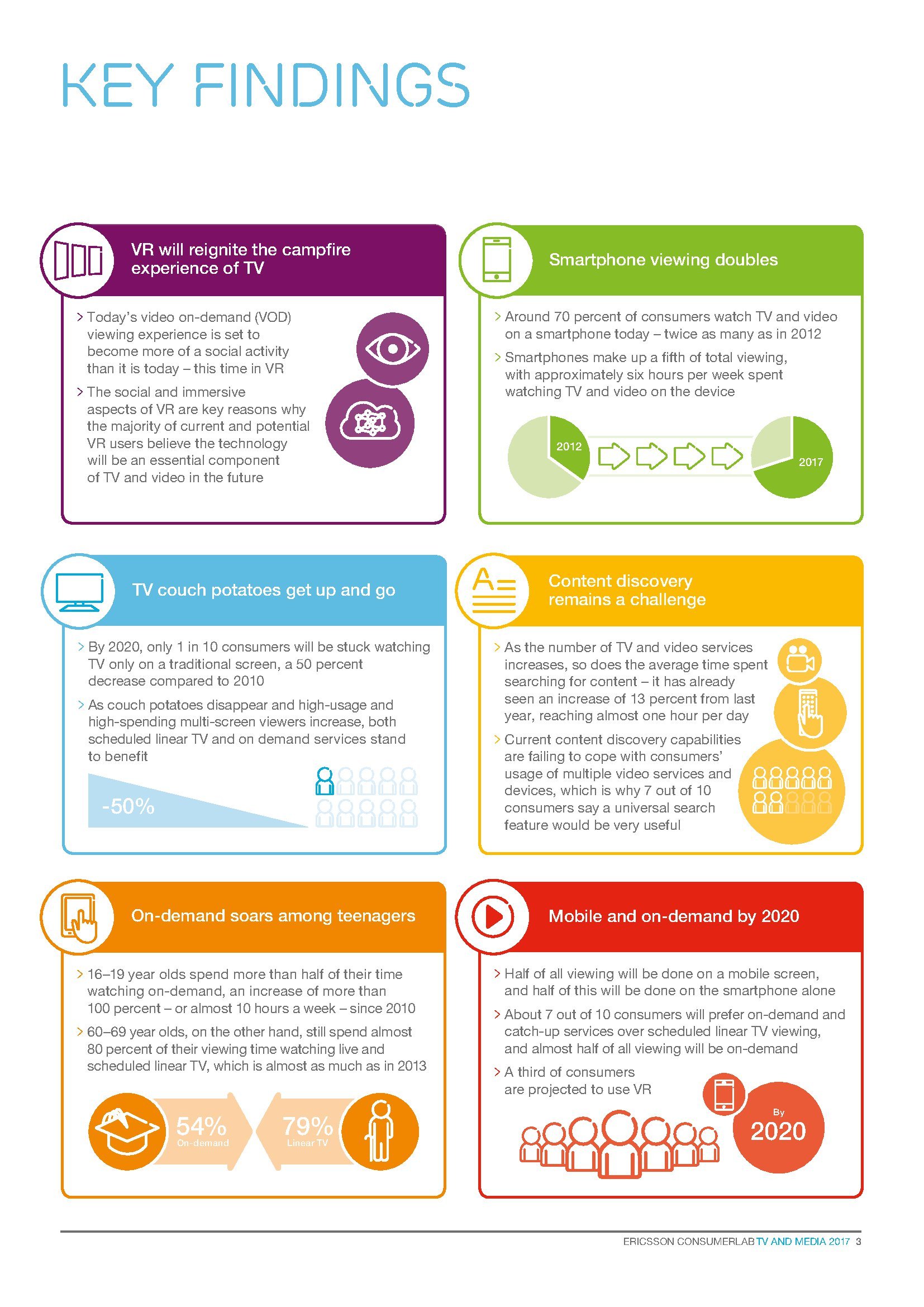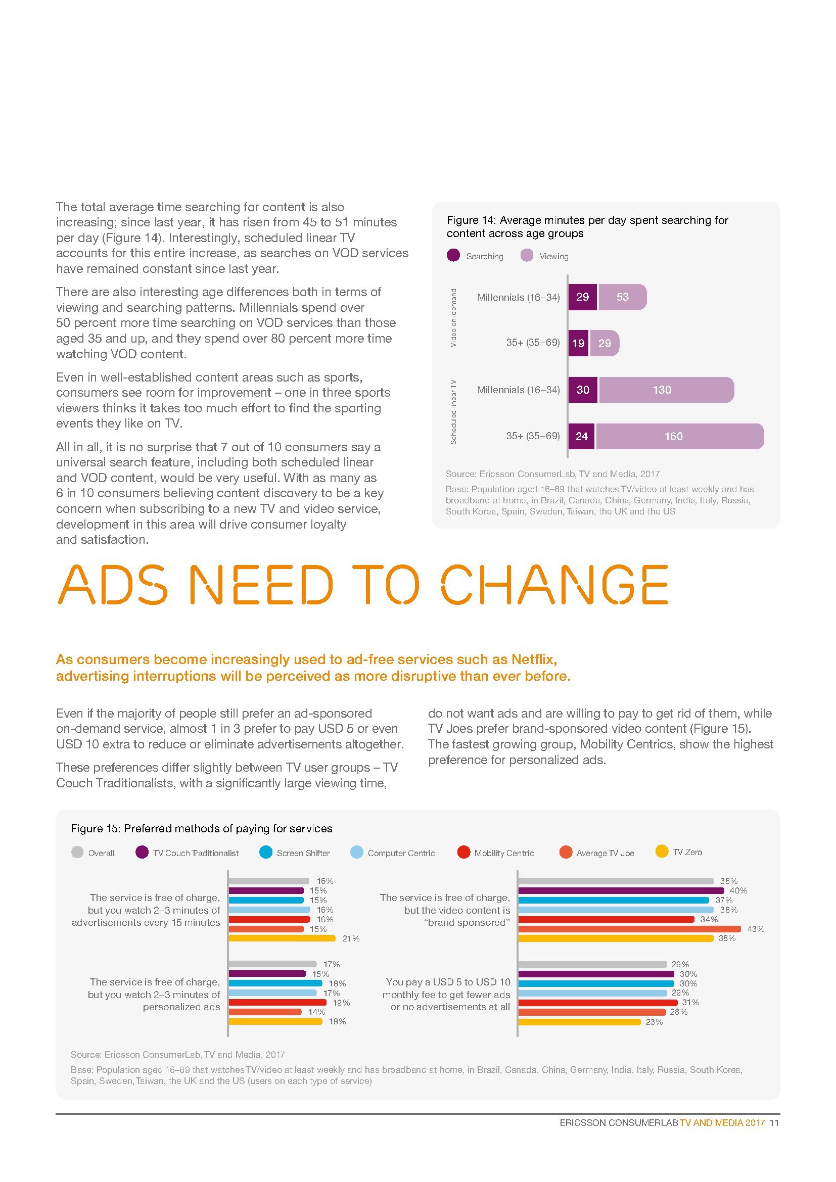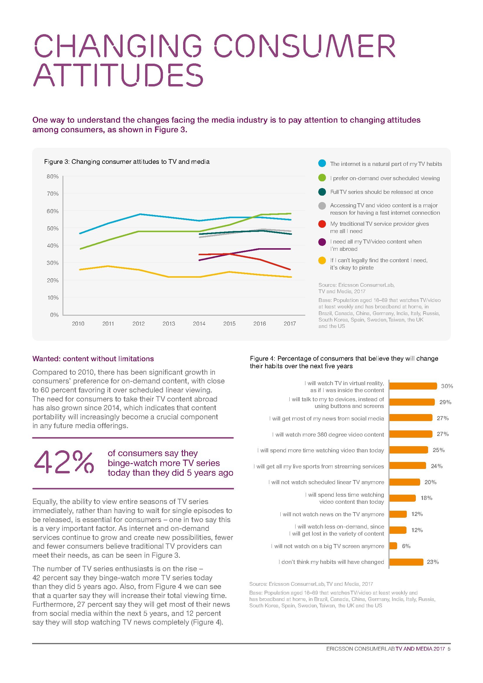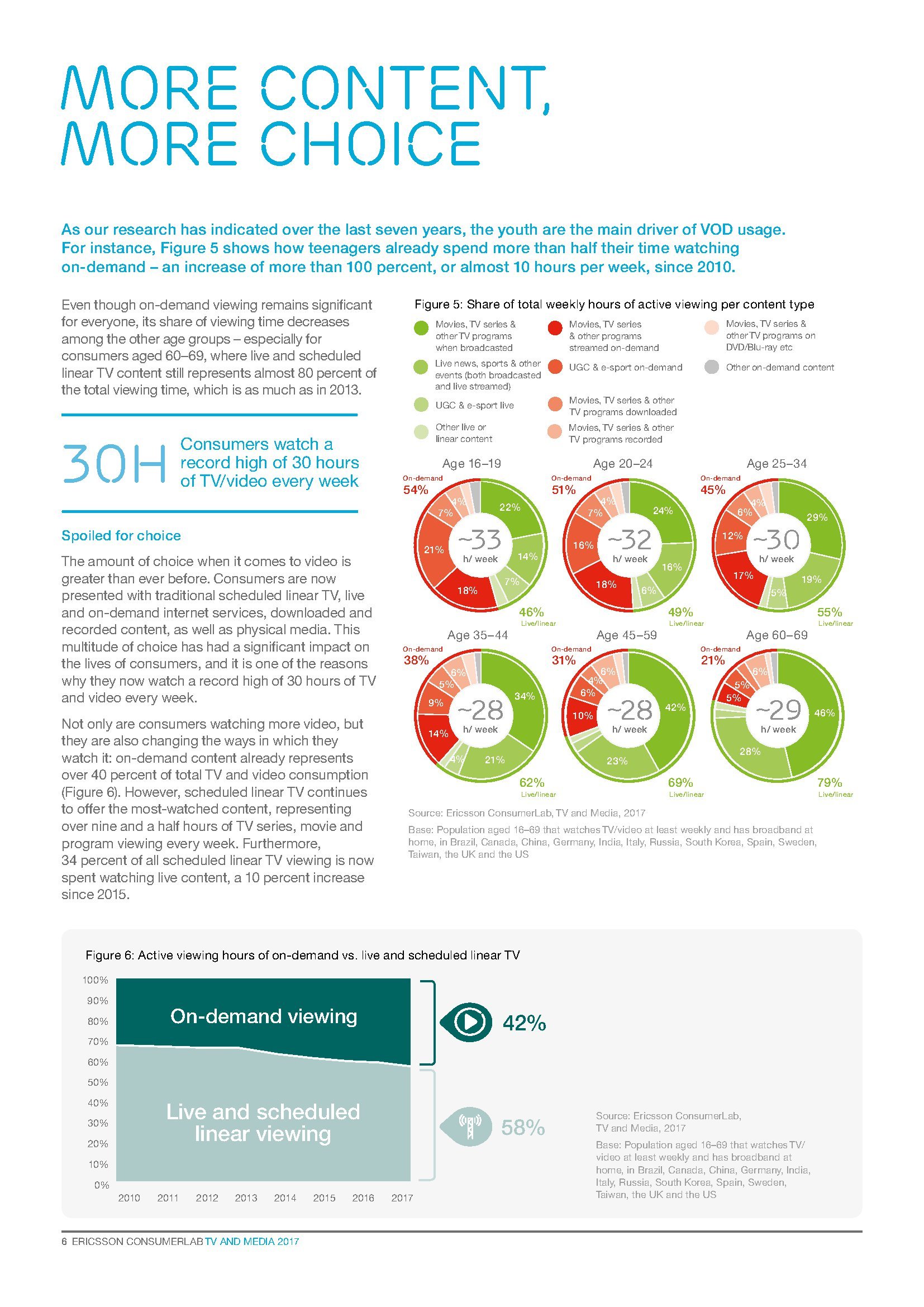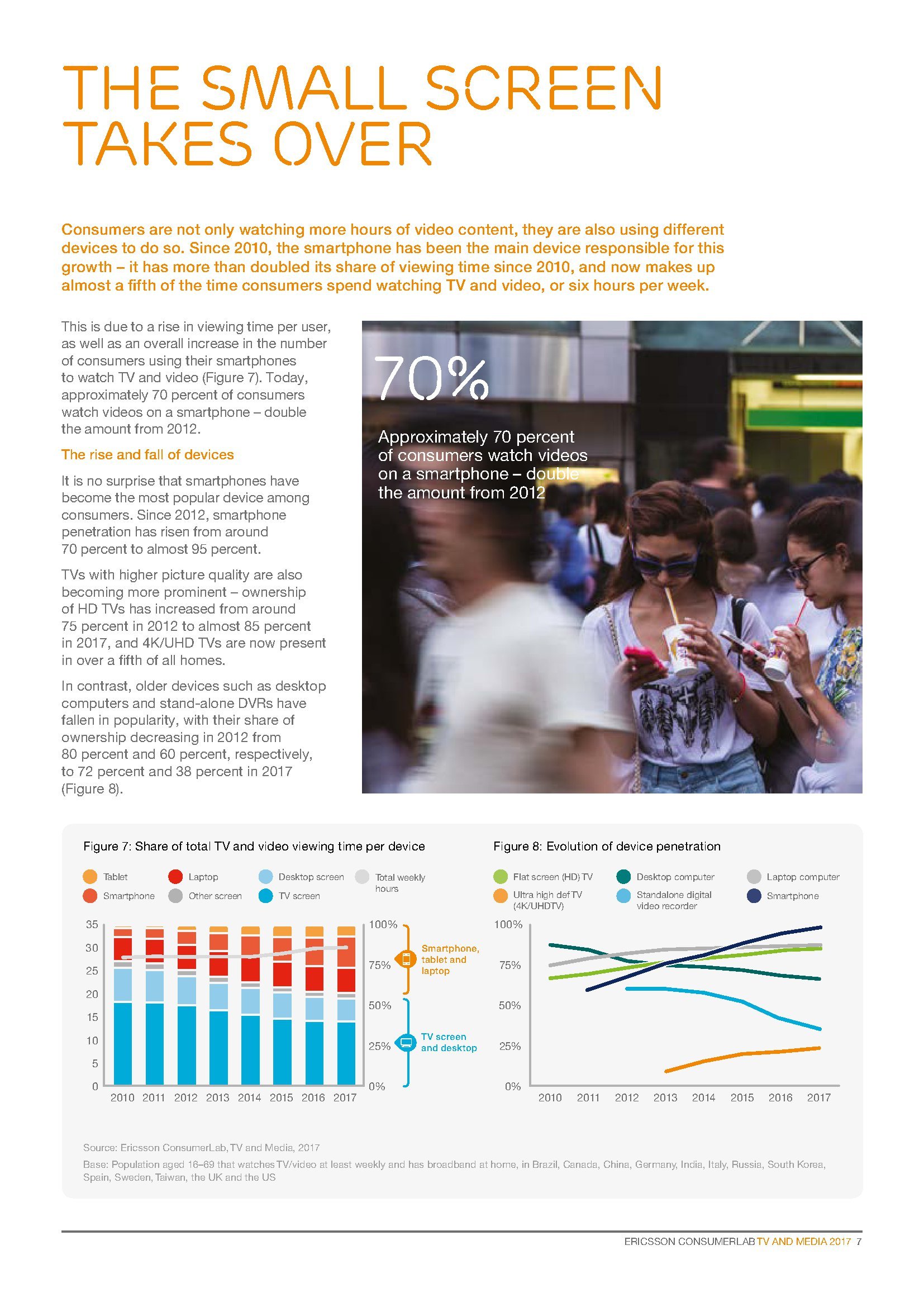 爱立信消费者实验室发布了“2017年电视和媒体报告”。该报告是建立在一项对全球13个主要经济体的16-69岁受众的调查(巴西、加拿大、中国、德国、印度、意大利、俄罗斯、韩国、西班牙、瑞典、台 湾、英国和美国)。