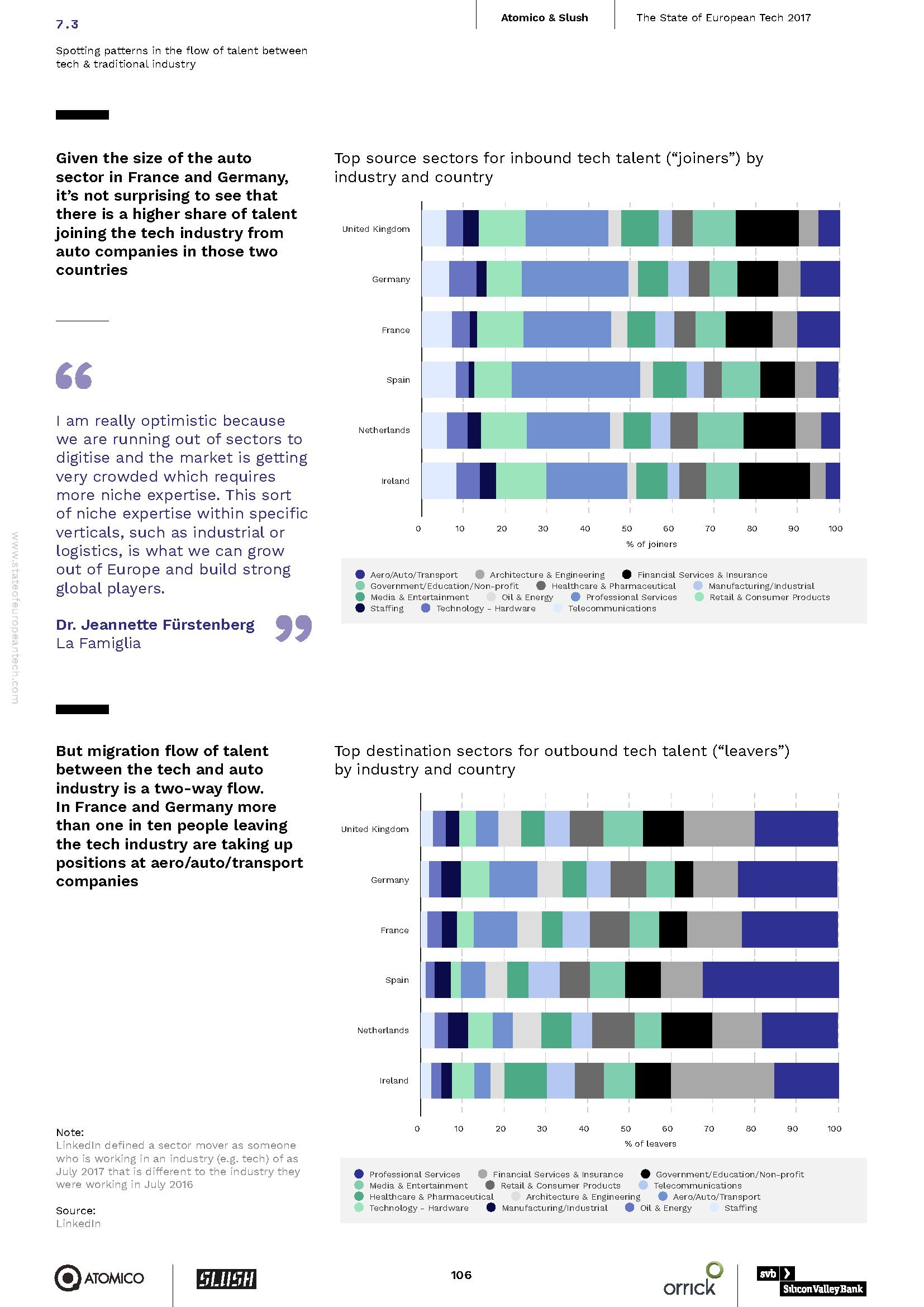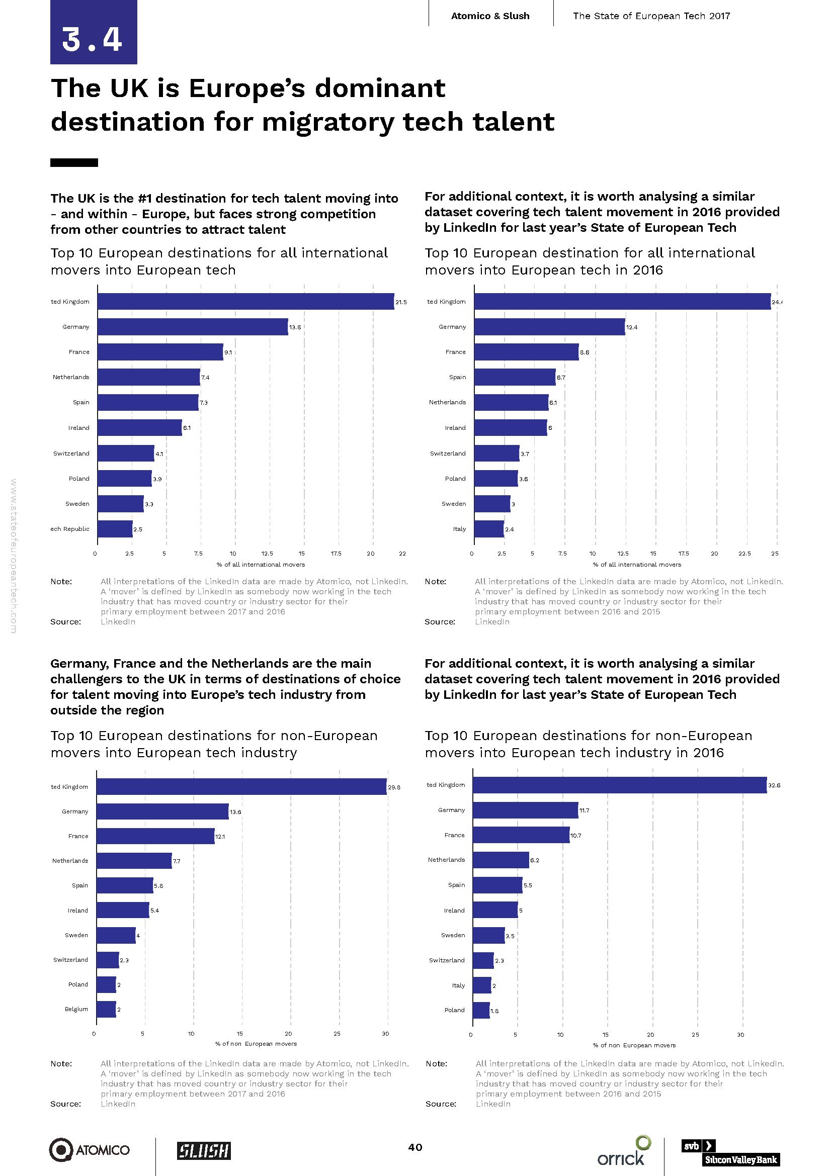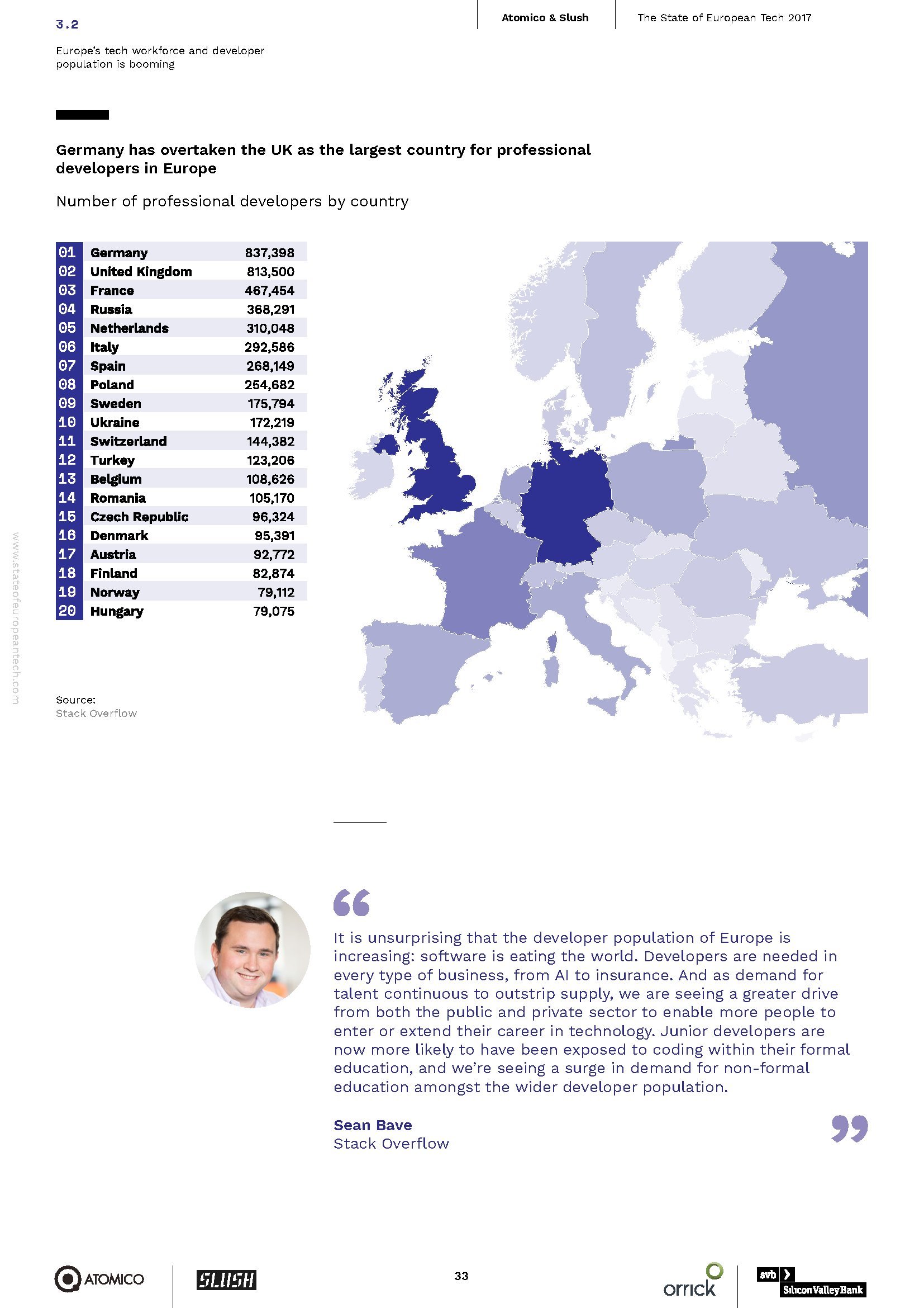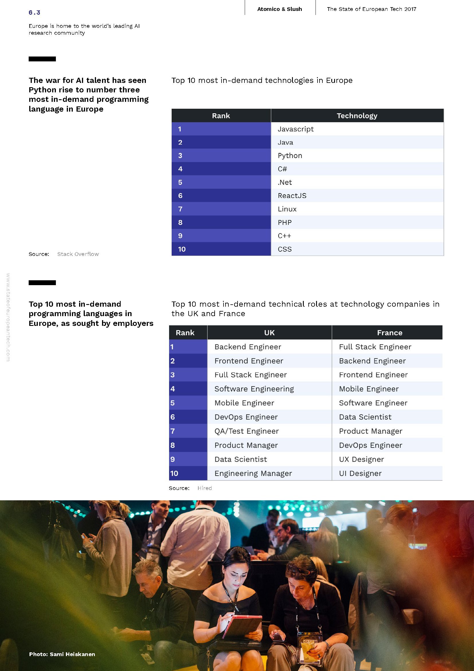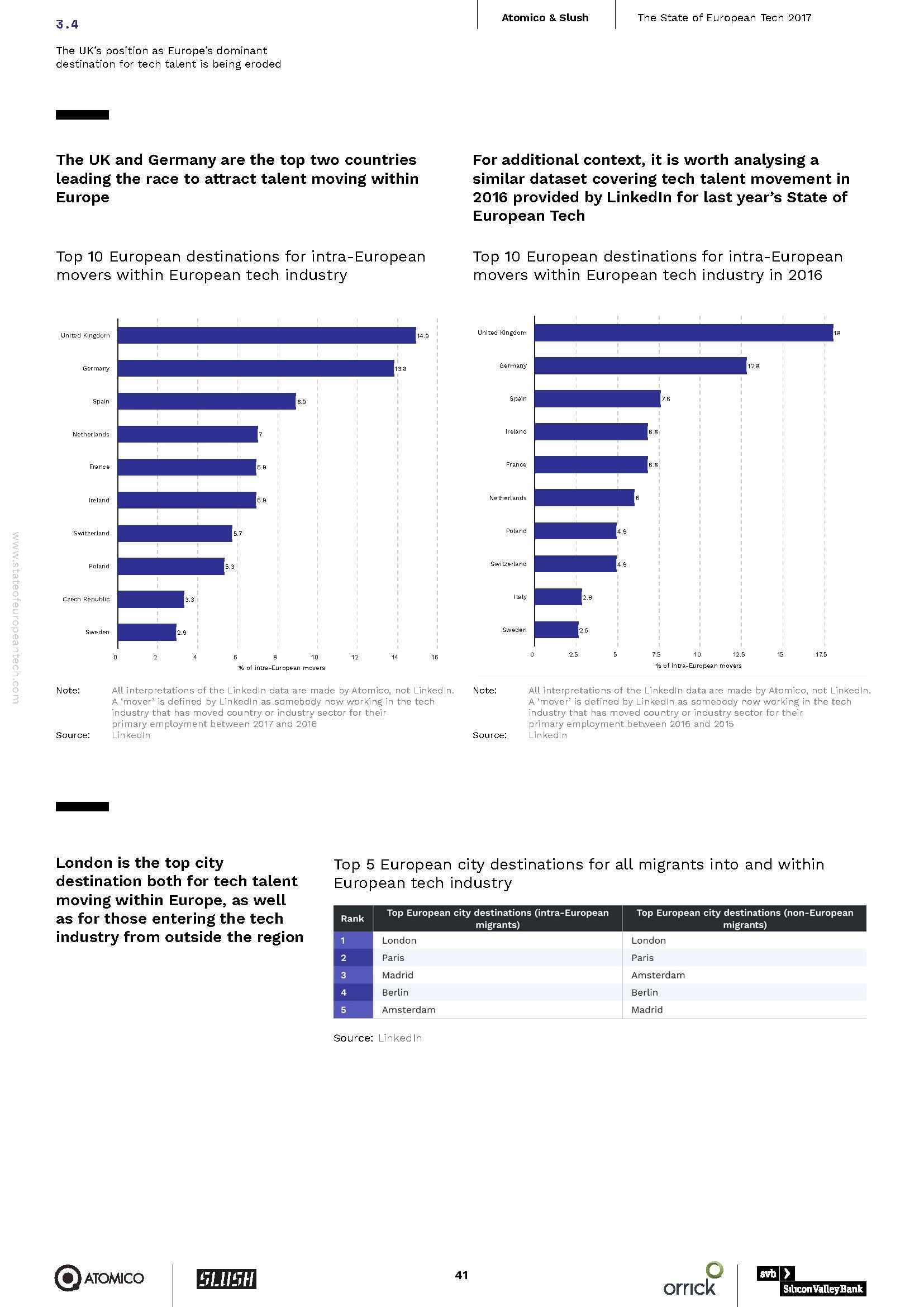 Atomico & Slush发布了“2017年欧洲科技行业报告”,在拉动就业方面,科技行业远超过其他欧洲行业。2017年,欧洲科技行业劳动力增长2.6%,而欧洲整体劳动力增长只有0.8%。