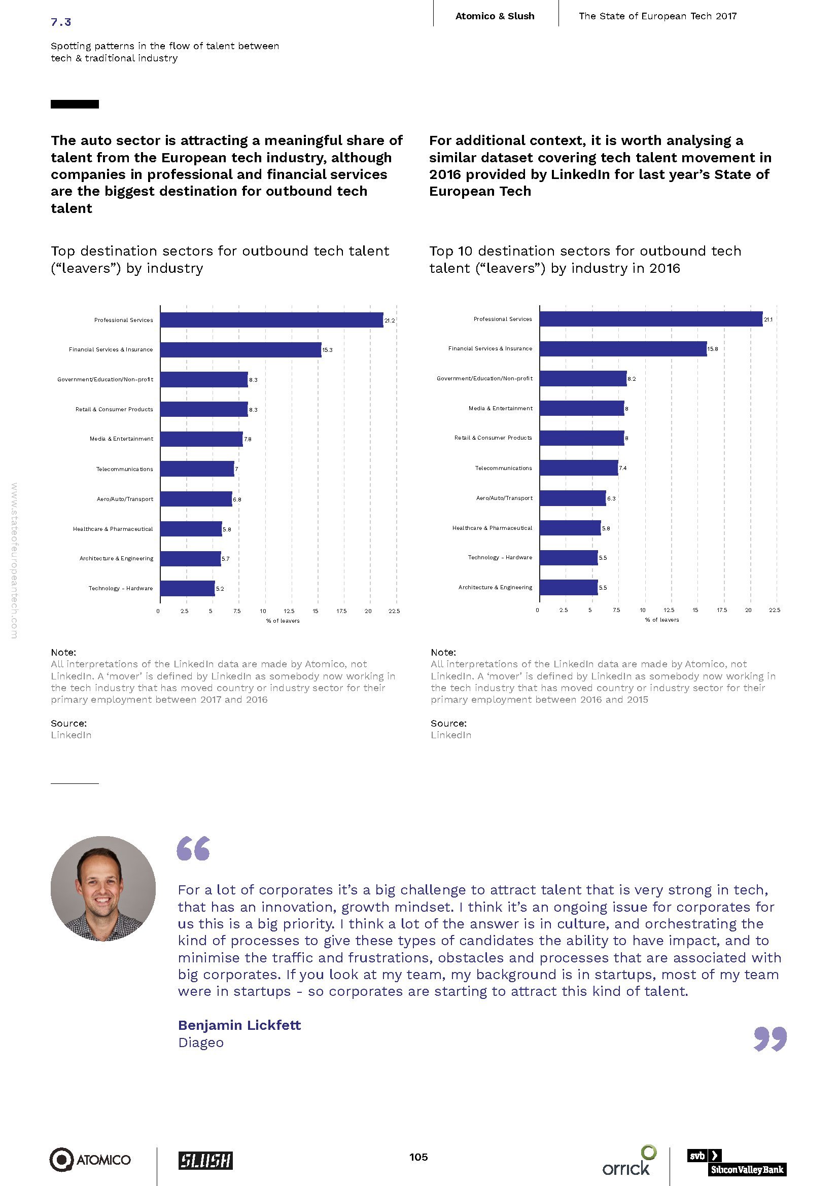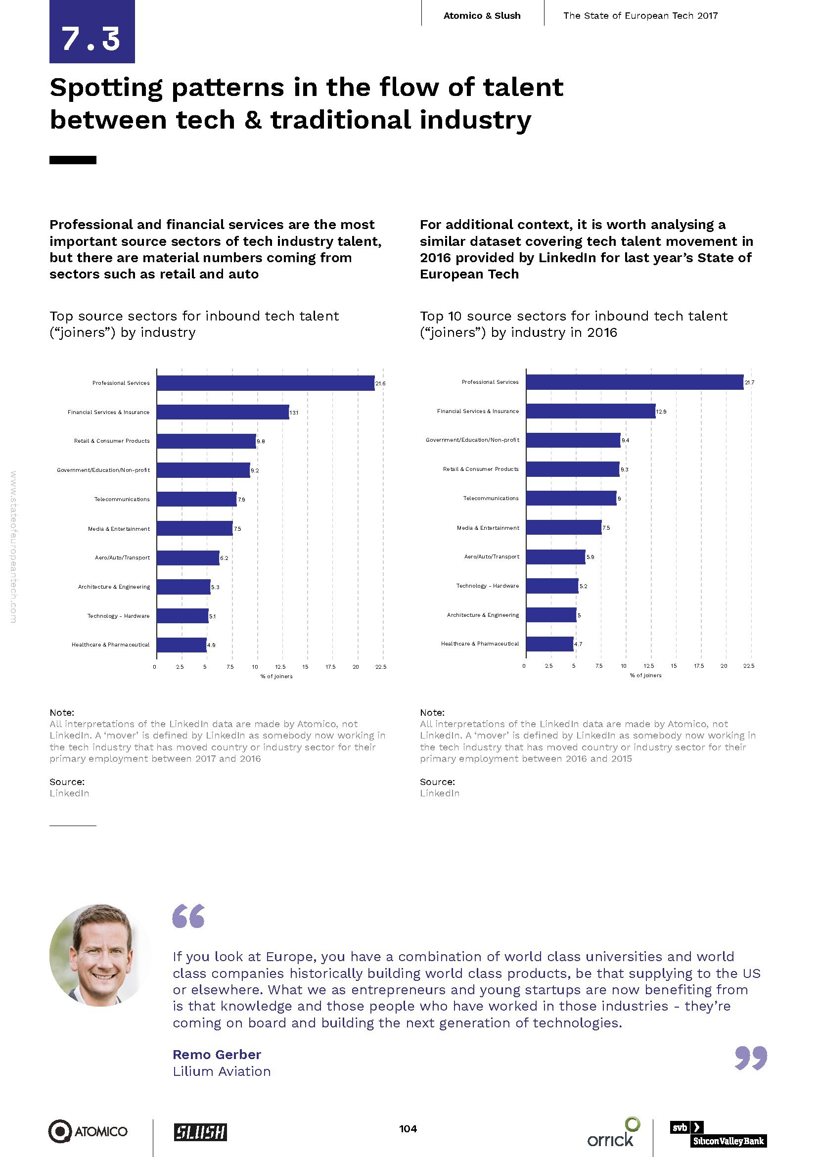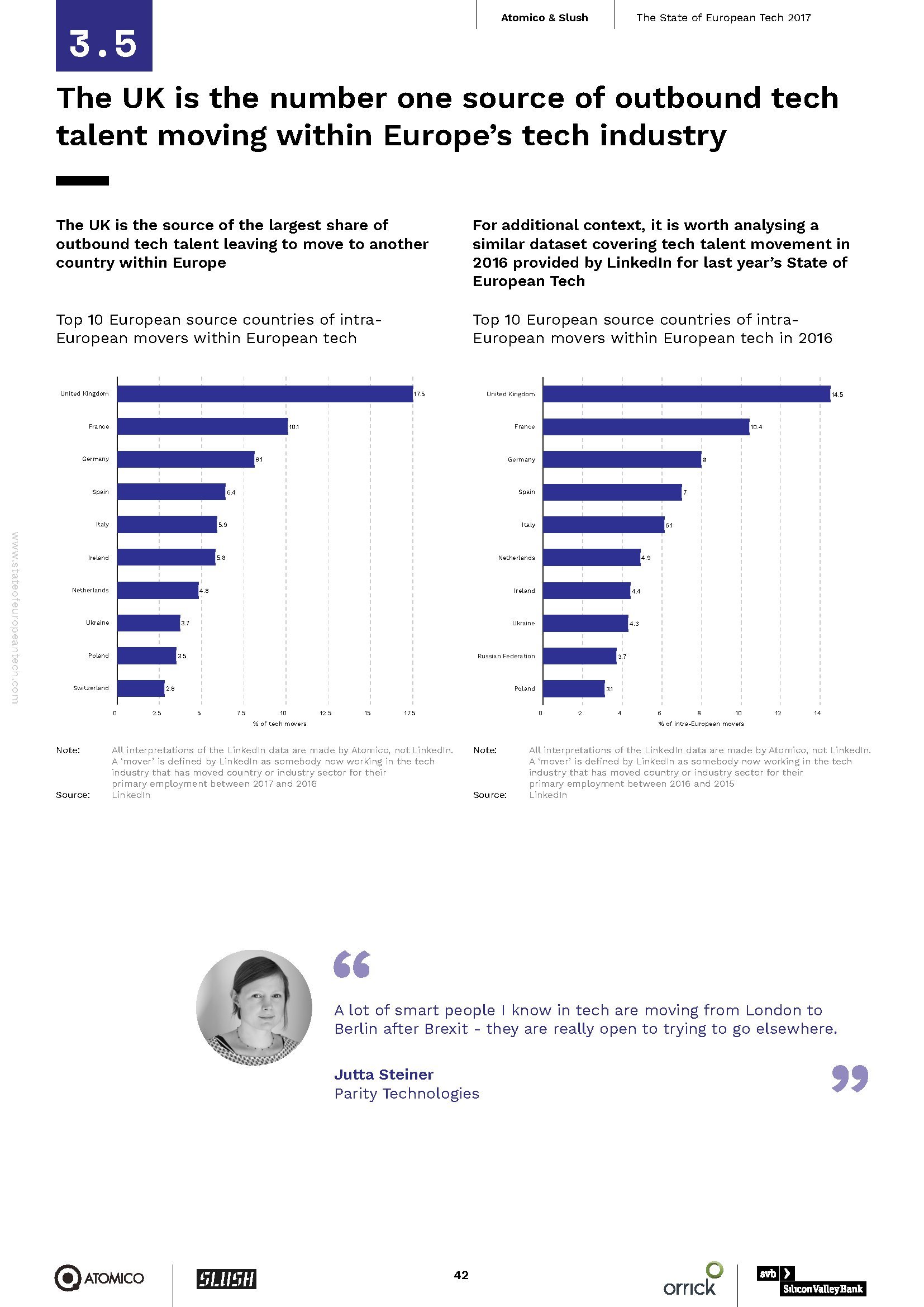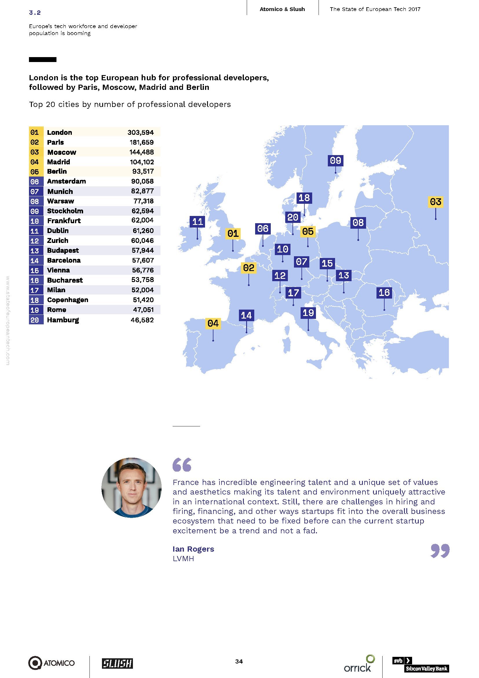 Atomico & Slush发布了“2017年欧洲科技行业报告”,在拉动就业方面,科技行业远超过其他欧洲行业。2017年,欧洲科技行业劳动力增长2.6%,而欧洲整体劳动力增长只有0.8%。