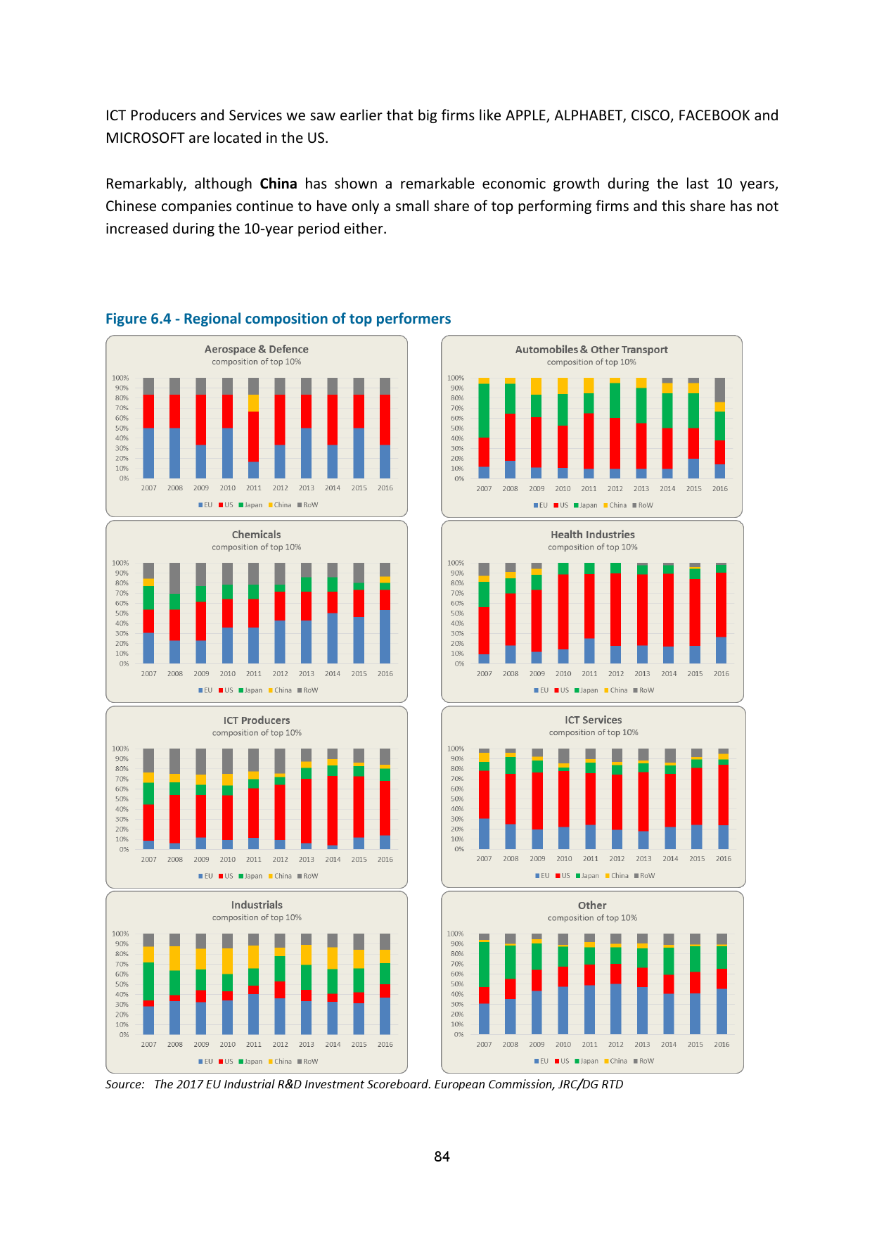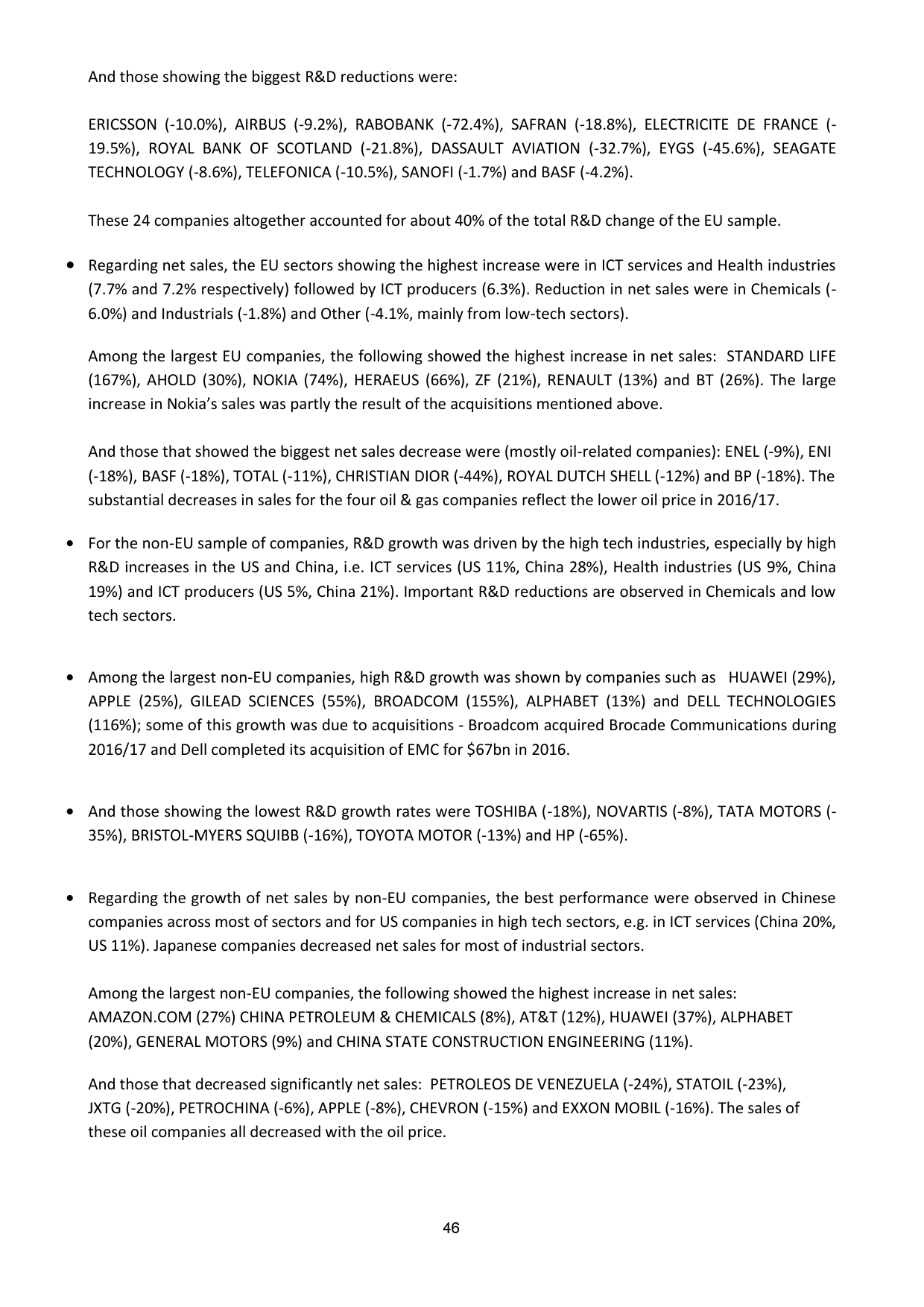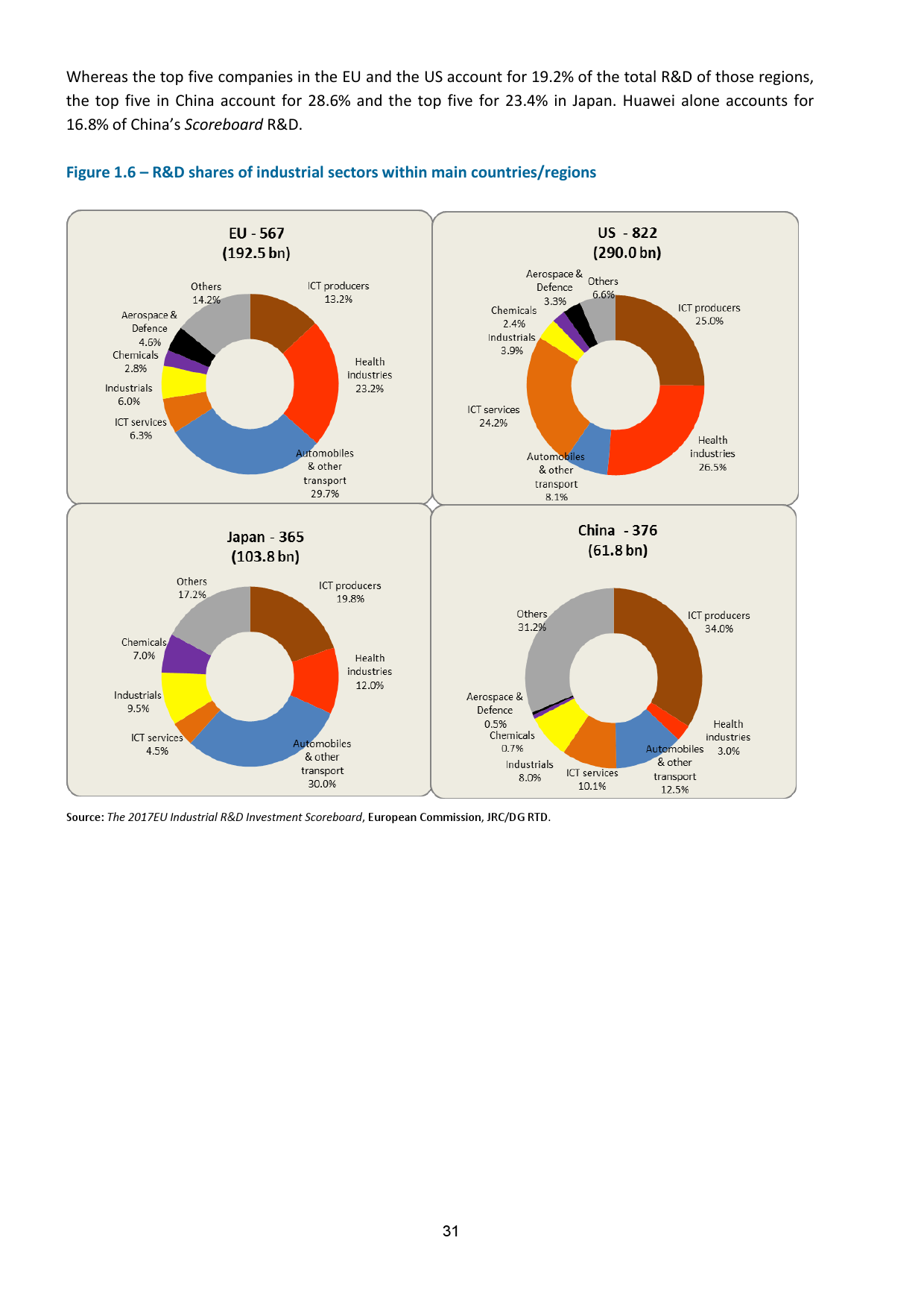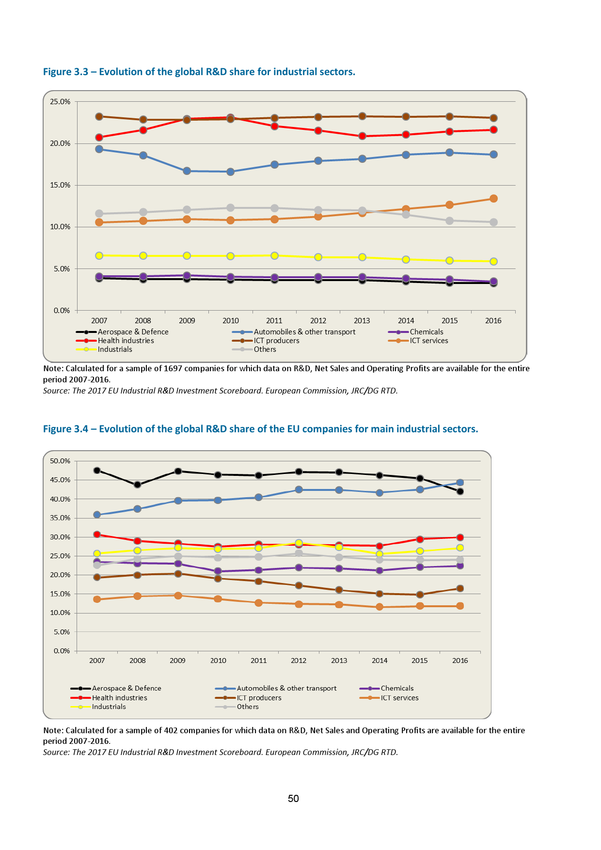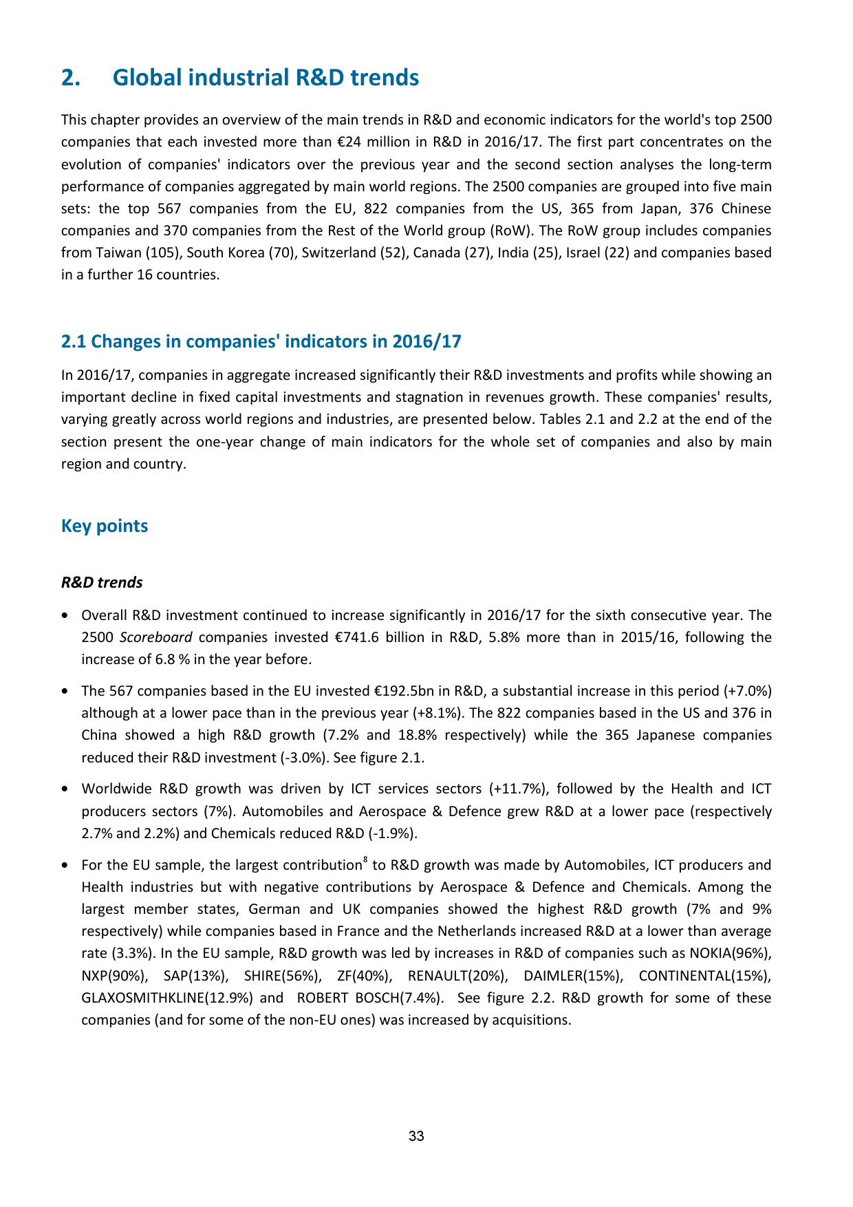 这2500家企业来自43个国家和地区,2016年它们的研发投资总额比上年增加5.8%,达到7416亿欧元,占全球所有企业研发投资总额的约90%。整体来看,全球企业研发投资增幅主要由信息通信技术领域推动。