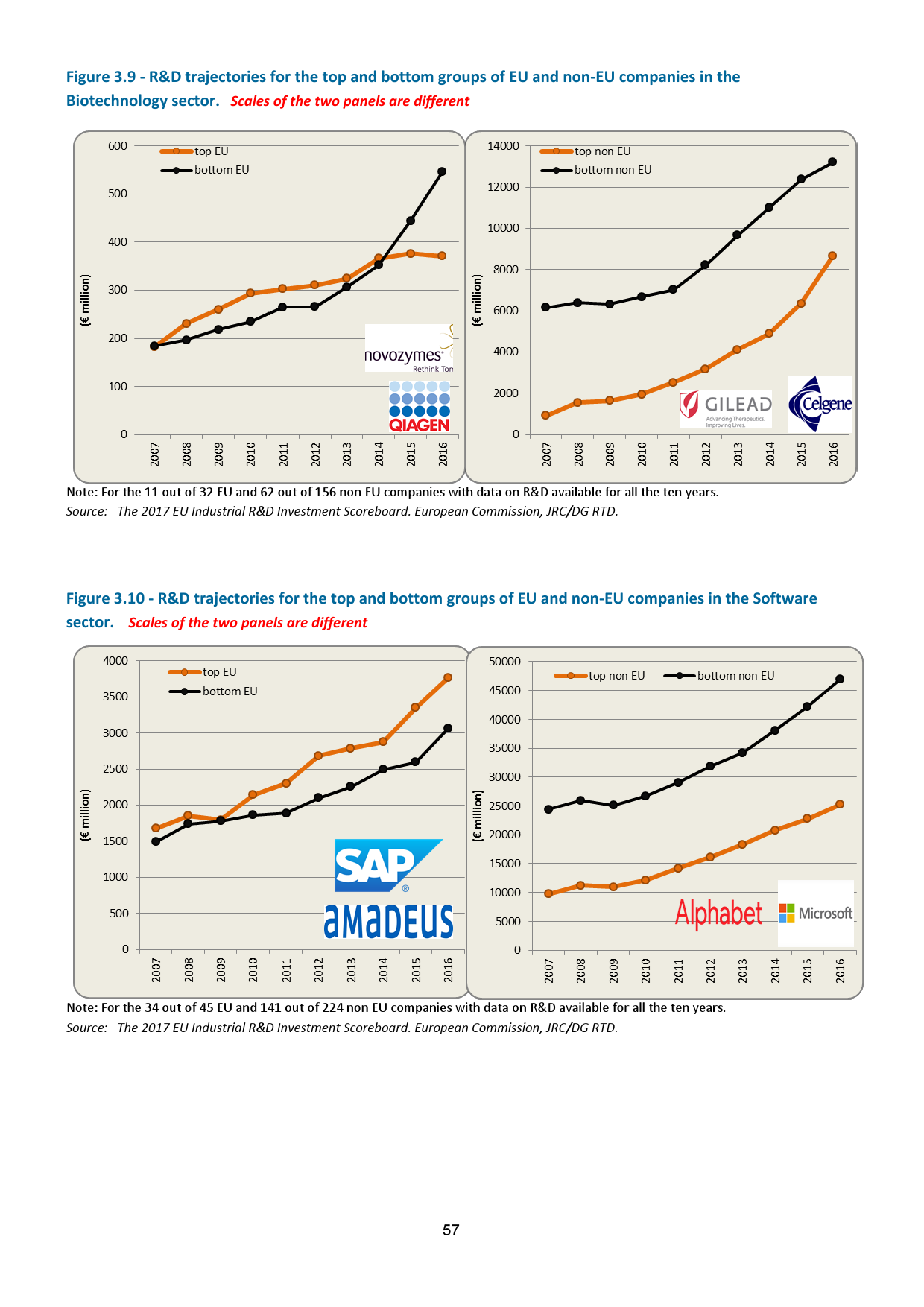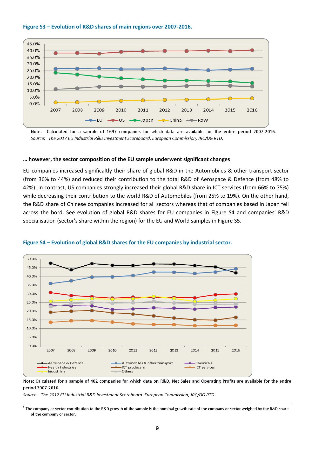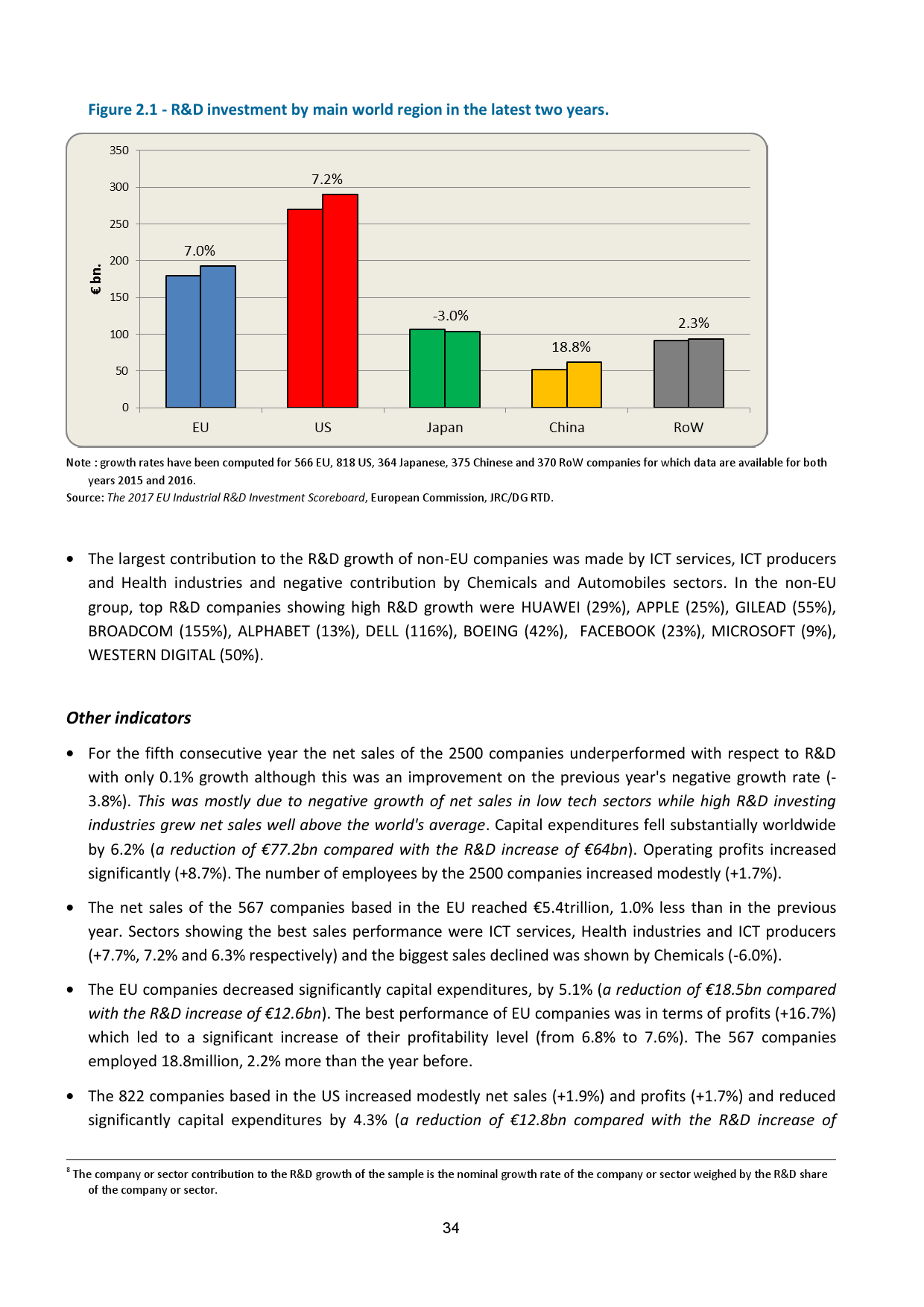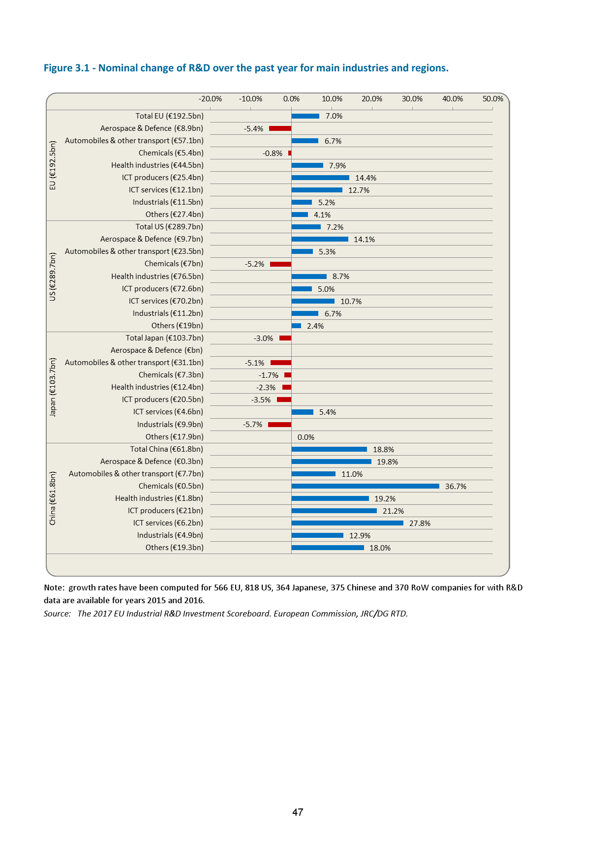 这2500家企业来自43个国家和地区,2016年它们的研发投资总额比上年增加5.8%,达到7416亿欧元,占全球所有企业研发投资总额的约90%。整体来看,全球企业研发投资增幅主要由信息通信技术领域推动。