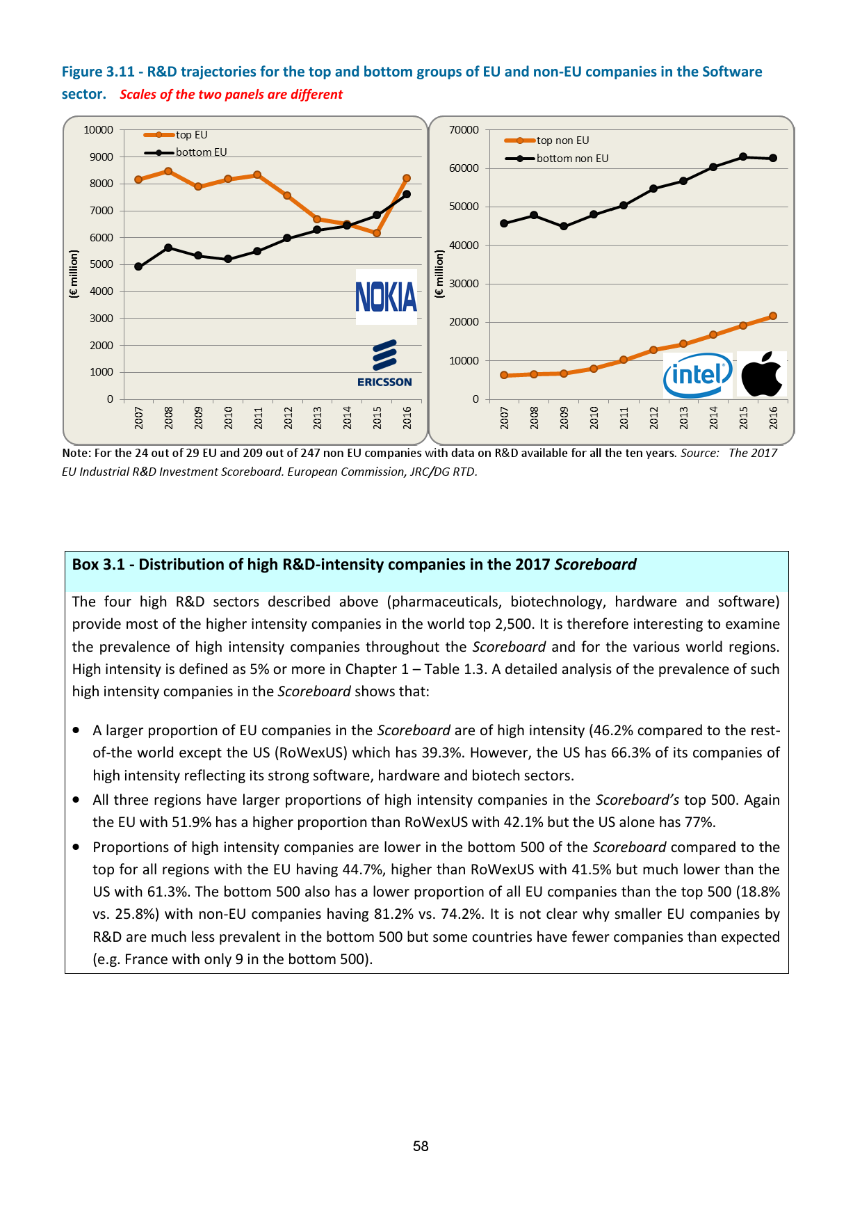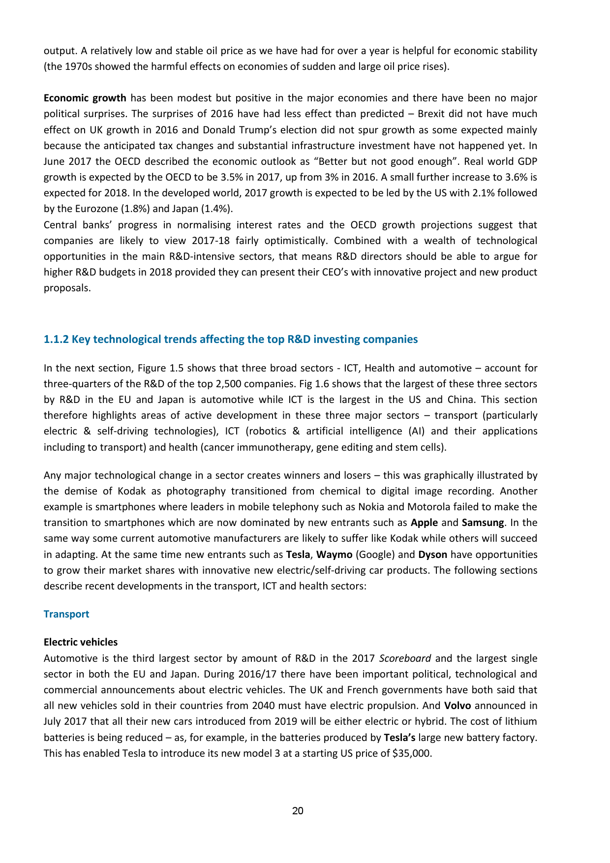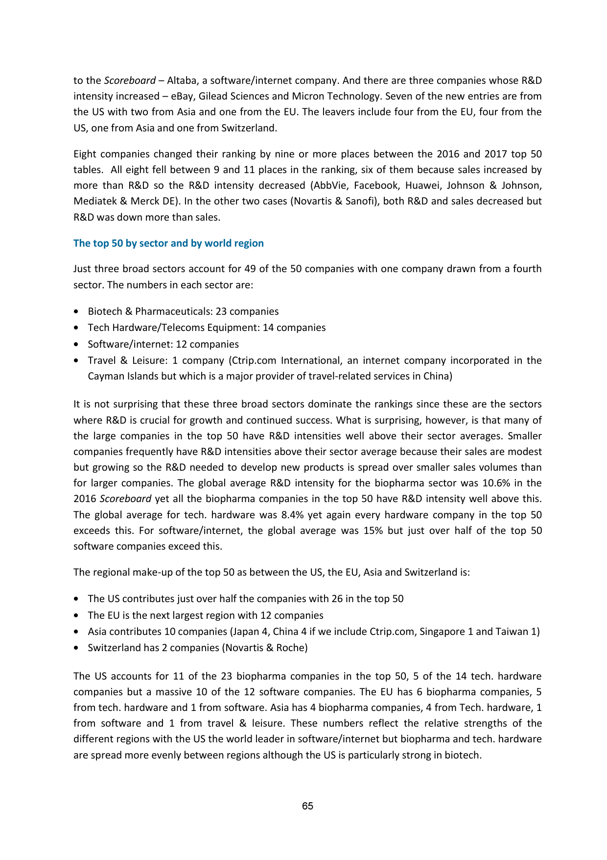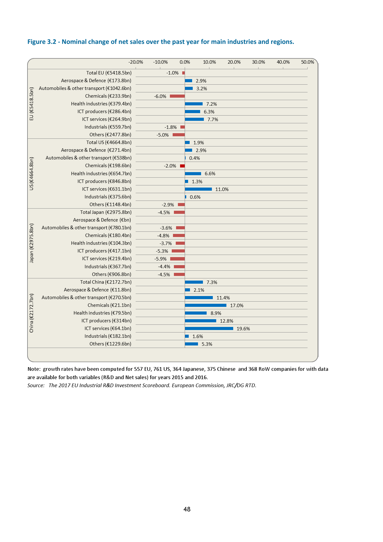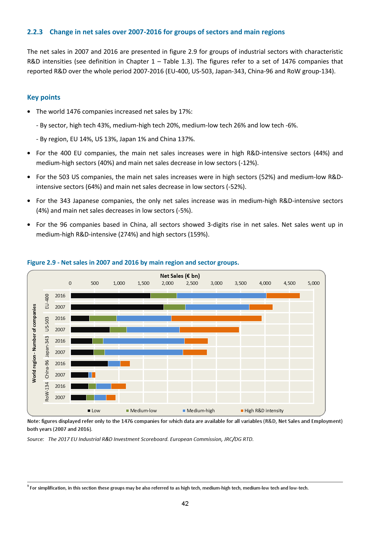 这2500家企业来自43个国家和地区,2016年它们的研发投资总额比上年增加5.8%,达到7416亿欧元,占全球所有企业研发投资总额的约90%。整体来看,全球企业研发投资增幅主要由信息通信技术领域推动。