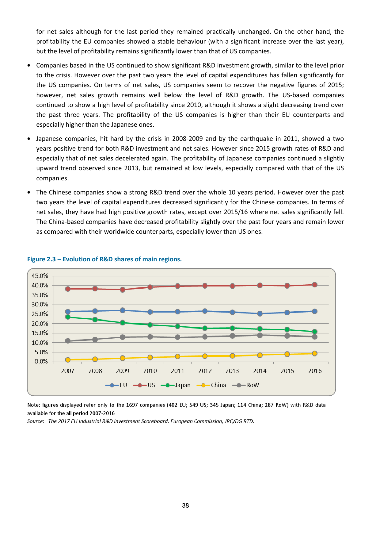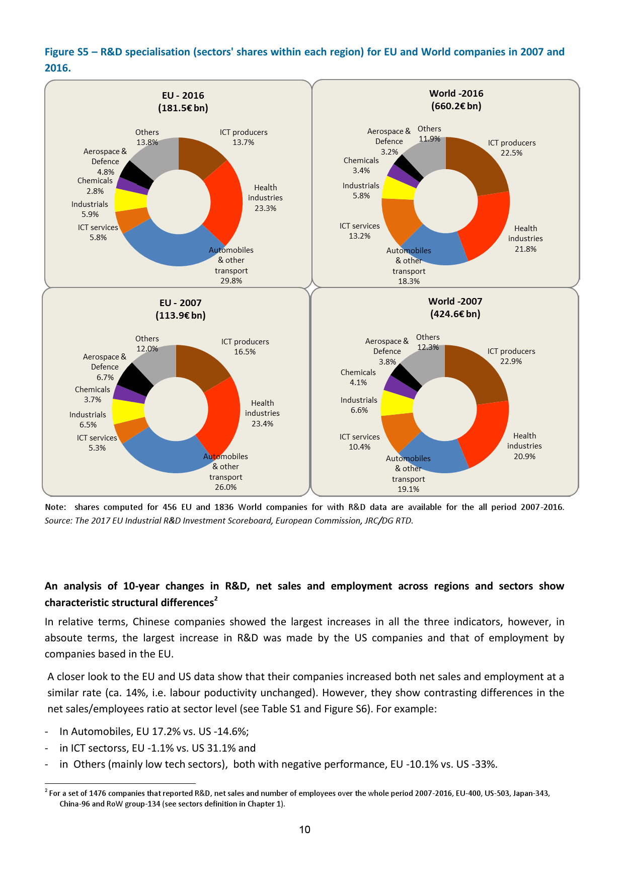 在榜单选取的2500家企业中,中国企业有376家,其研发投资总额占榜单企业研发投资总额的8%,欧盟和美国的企业则分别占26%和39%。