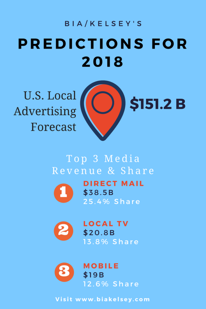 2018年,美国本地广告收入将呈现强劲增长,事实上,是五年来的最高纪录。
