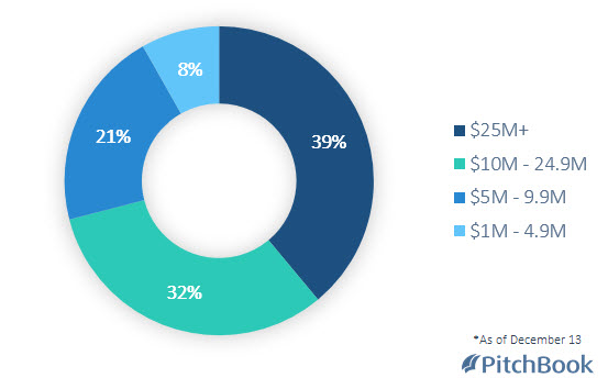 大约2/3的交易额在100万到500万美元之间,只有5%的交易在50万到90万美元之间,这曾经是种子交易投资额的典型范围。