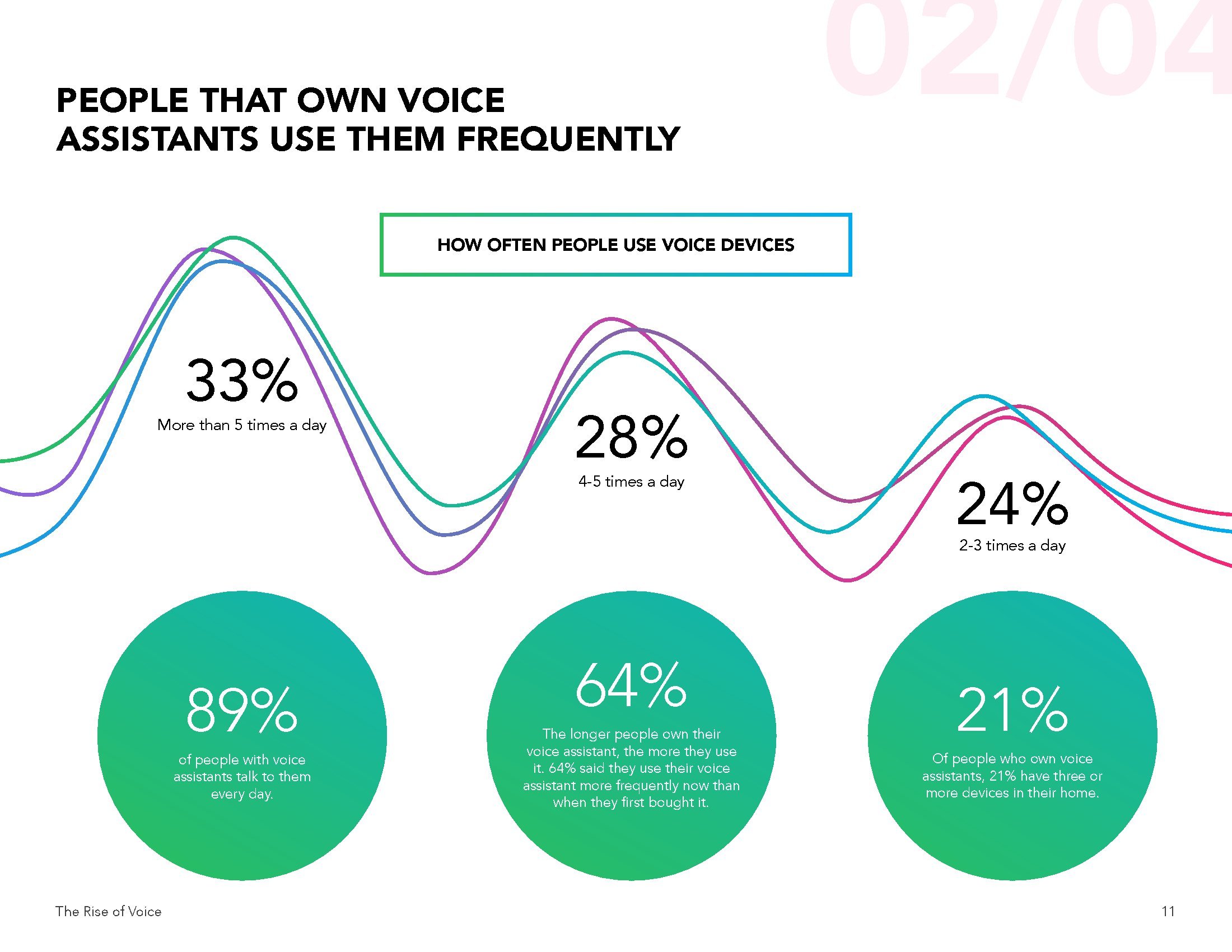 调查显示,每天超过89%的用户与他们的语音助手交谈,1/3每天和语音助手交谈超过5次。