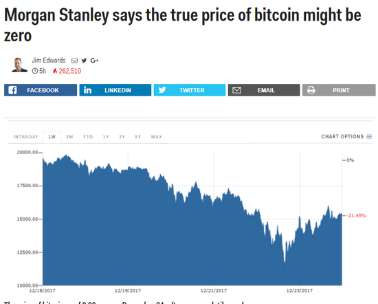 摩根士丹利分析师James Faucette与他的团队在近期公布的研报中表示,比特币的真实价值可能是零。