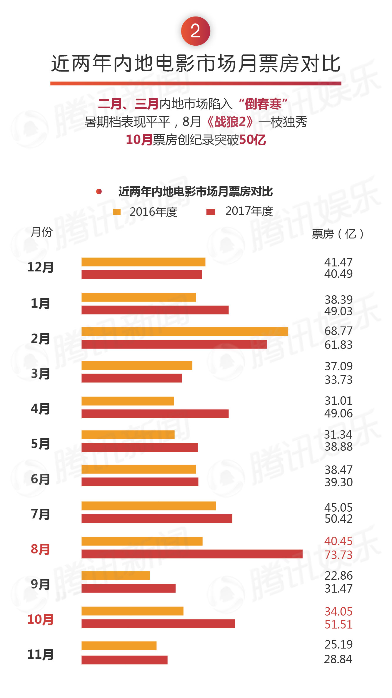 直到《战狼2》的出现,它以每天打破几项纪录的速度,刷新所有人对于市场活力和潜力的认识,也把中国电影票房增长的数字强力拉回快车道。