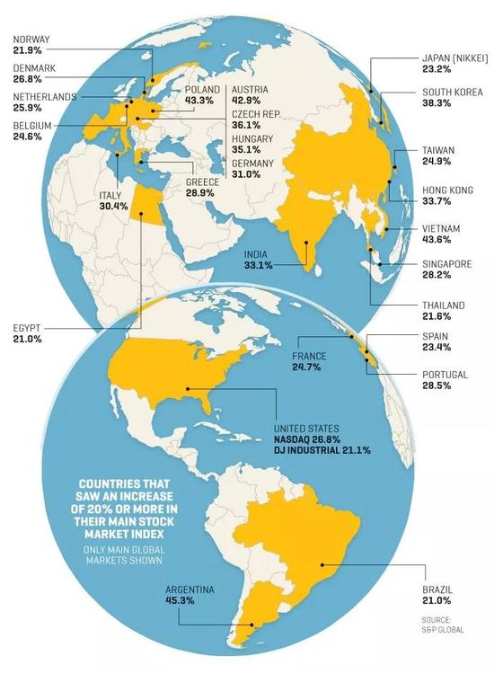 道琼斯指数虽然创纪录地达到24000点,但比起阿根廷Merval指数45.3%的升幅简直小巫见大巫。