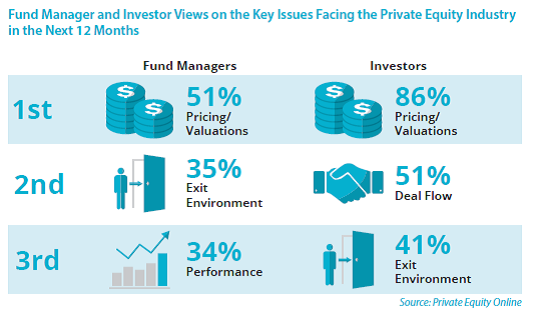 Preqin的调查发现,基金经理和投资者认为估值是该行业面临的最大问题。随着价格持续上涨,基金经理和投资者担心要以合理的价格收购资产将变得越来越难。45%的投资者认为未来很长一段时间高估值会导致投资组合回报率降低。