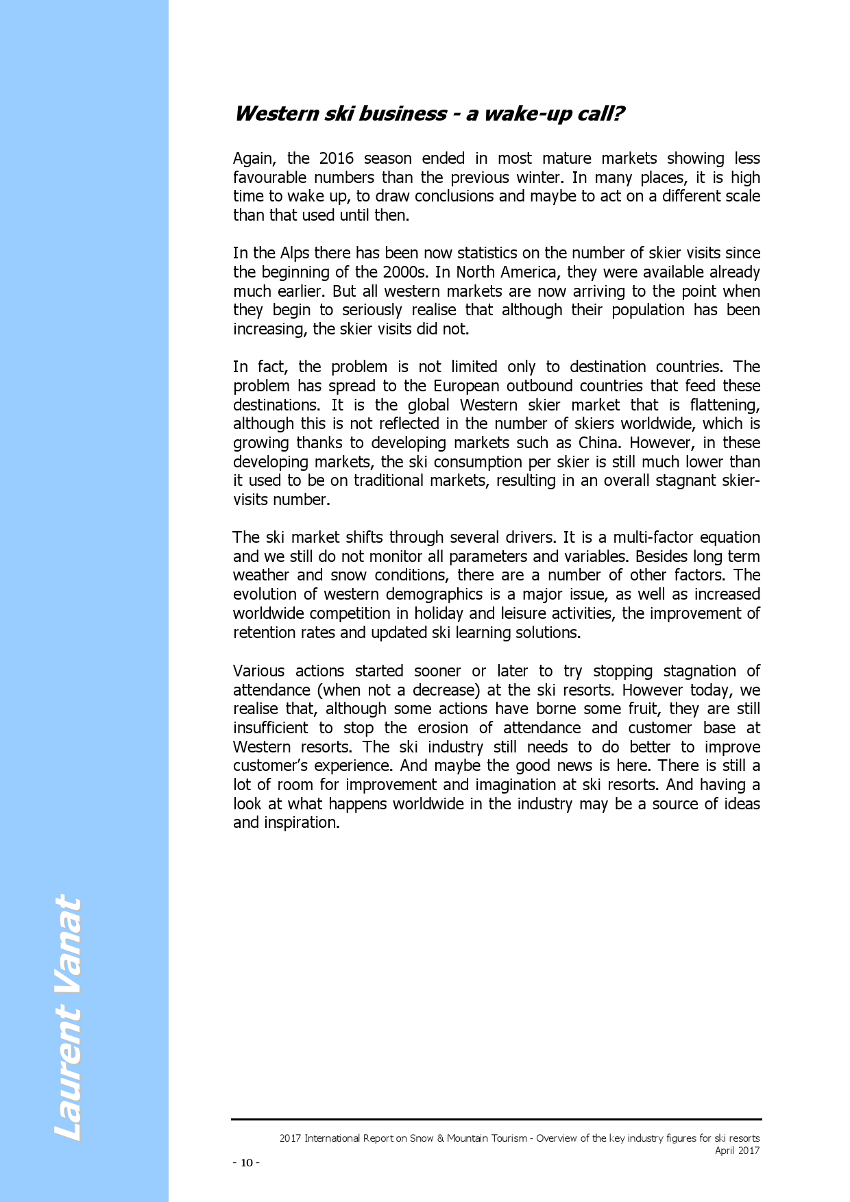 从全球范围总体来看,滑雪行业的增长陷入了停滞甚至缓慢下滑,尤其是传统滑雪市场,比如阿尔卑斯山脉国家和日本。新兴滑雪市场例如中国和东欧的崛起并没有能够完全取代这些传统市场的萎缩。