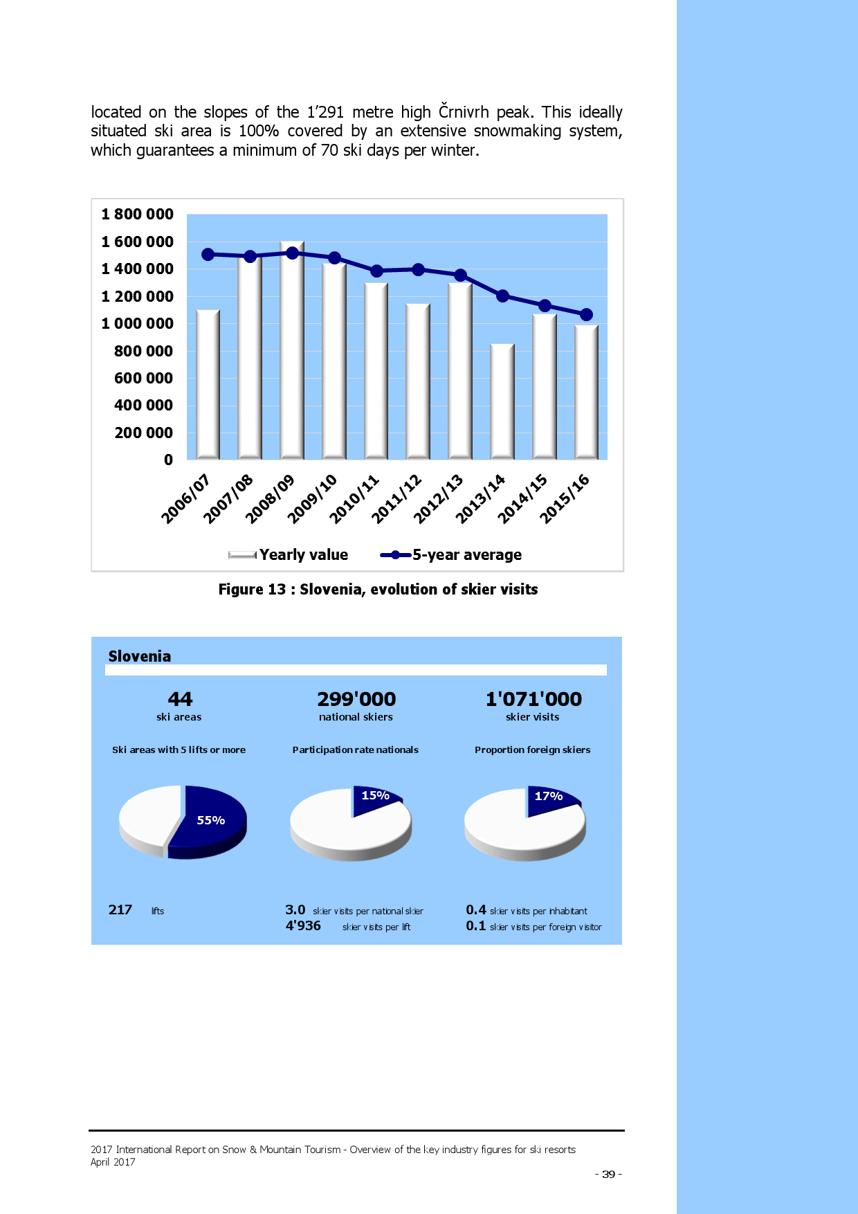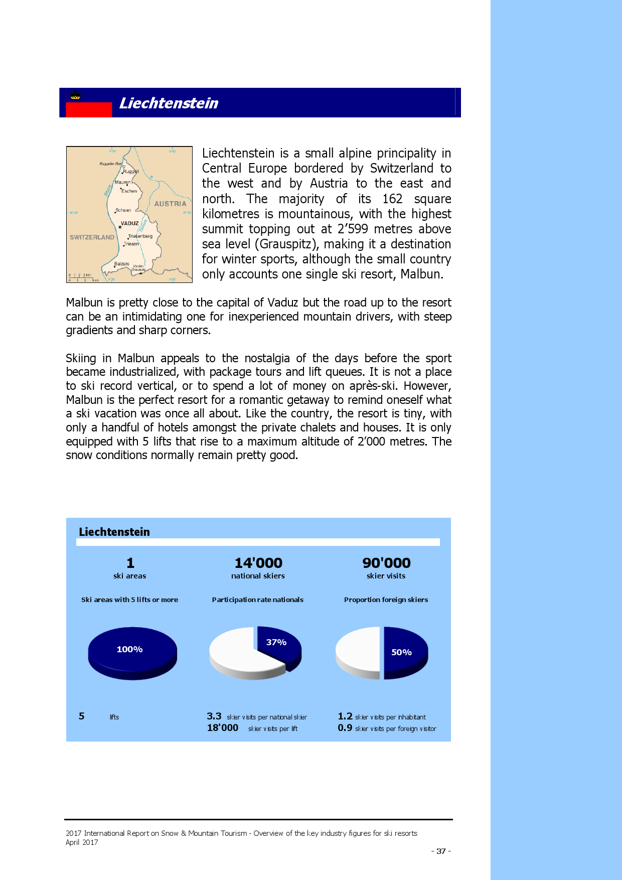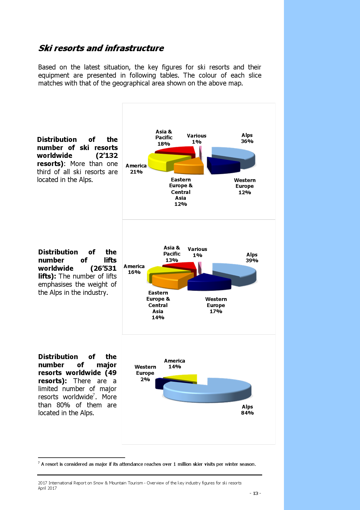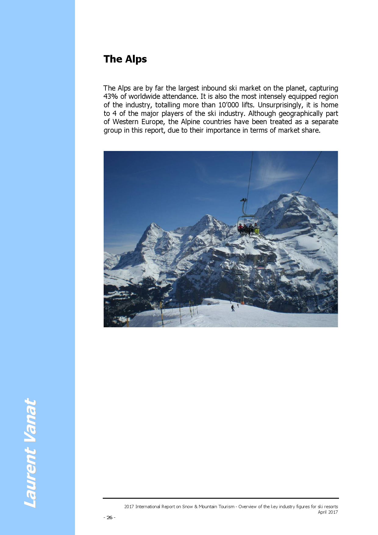 作为地球上最大的滑雪市场,阿尔卑斯山区的滑雪场占有了全球43%的滑雪人次数。这个地区的设施也是最齐备和先进的,拥有超过一万条索道。