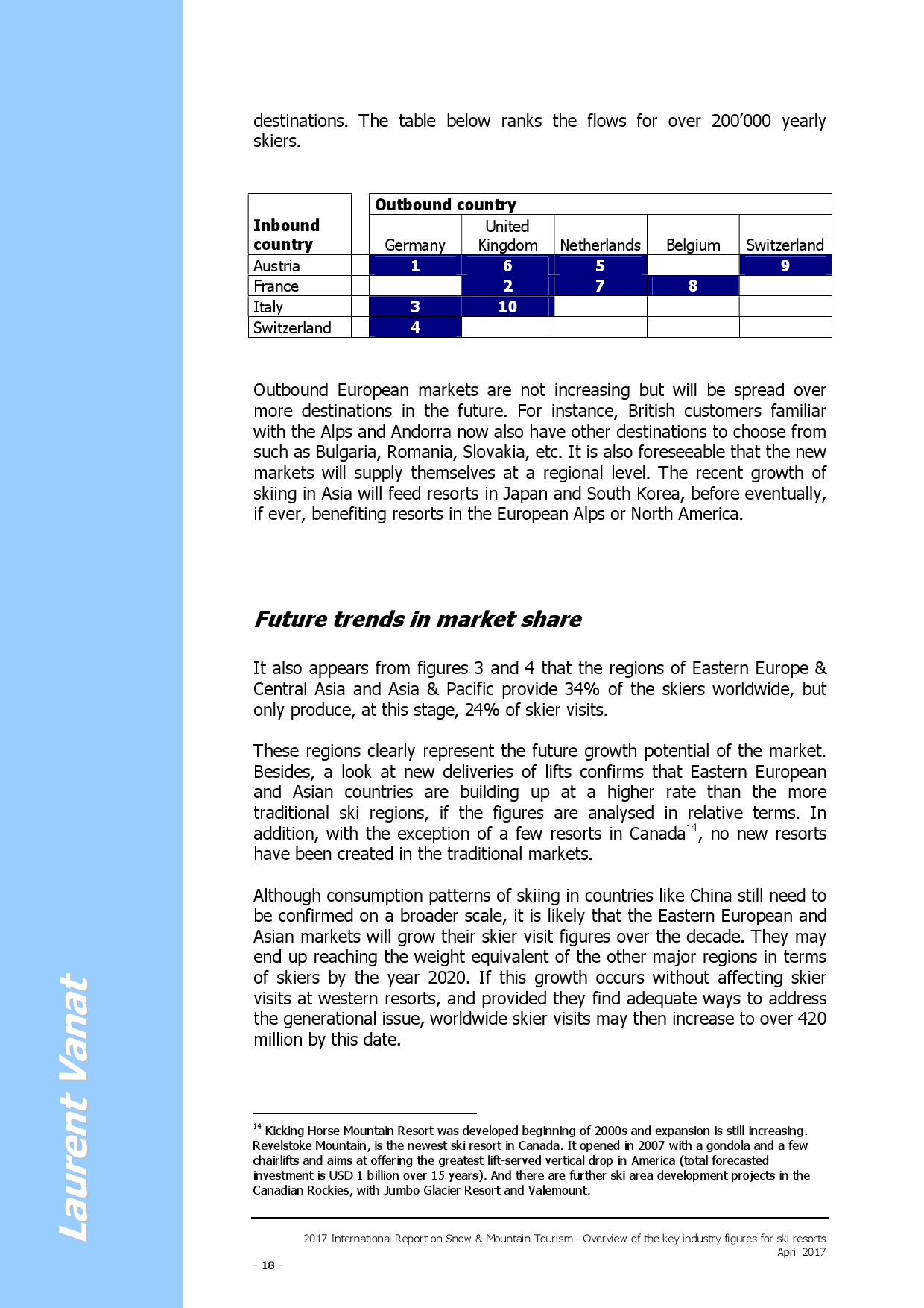 如果亚洲和东欧的滑雪市场在不影响西方滑雪市场的前提下保持增长,到2020年全球的滑雪人次数有望到达4亿2千万次。