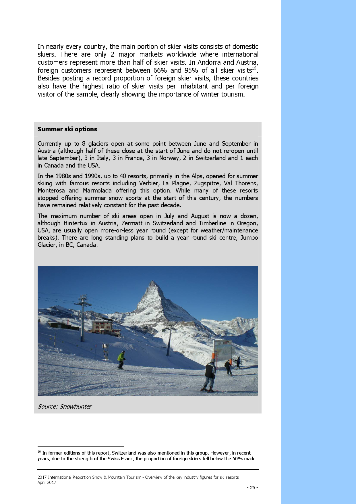 加拿大拥有一个非常成熟的市场,主要依靠本国和美国的滑雪游客,但目标客户群体人口老龄化带来的市场萎缩问题非常严重。2015年加拿大度过了十年以来滑雪人次数最低的一个冬天。