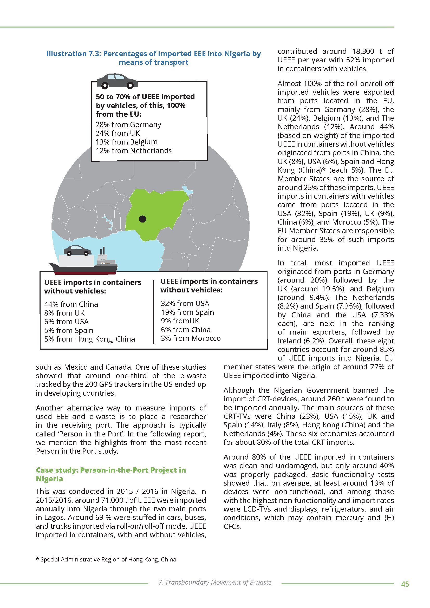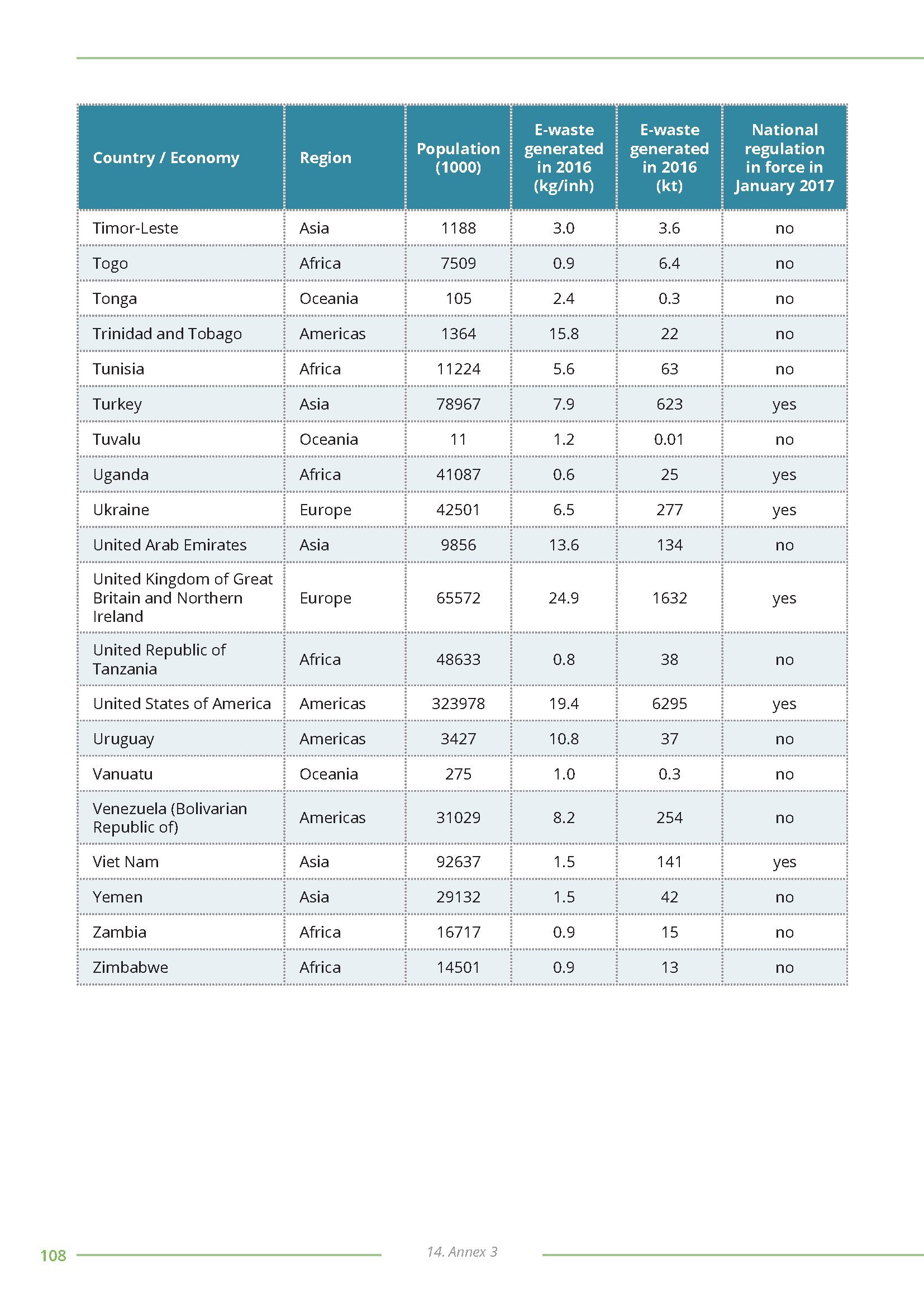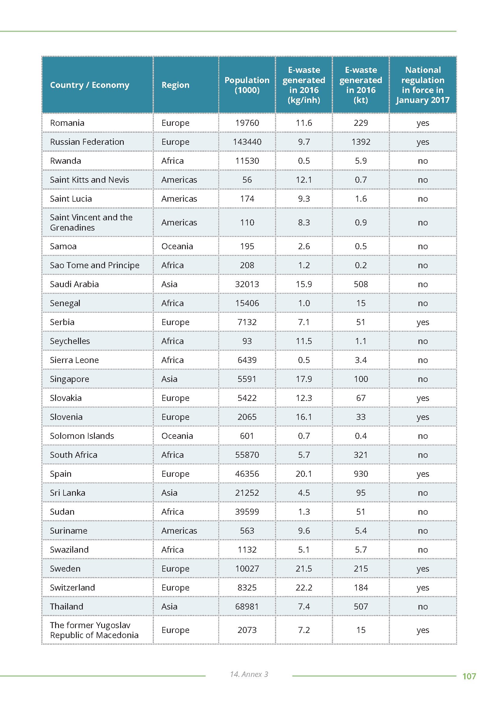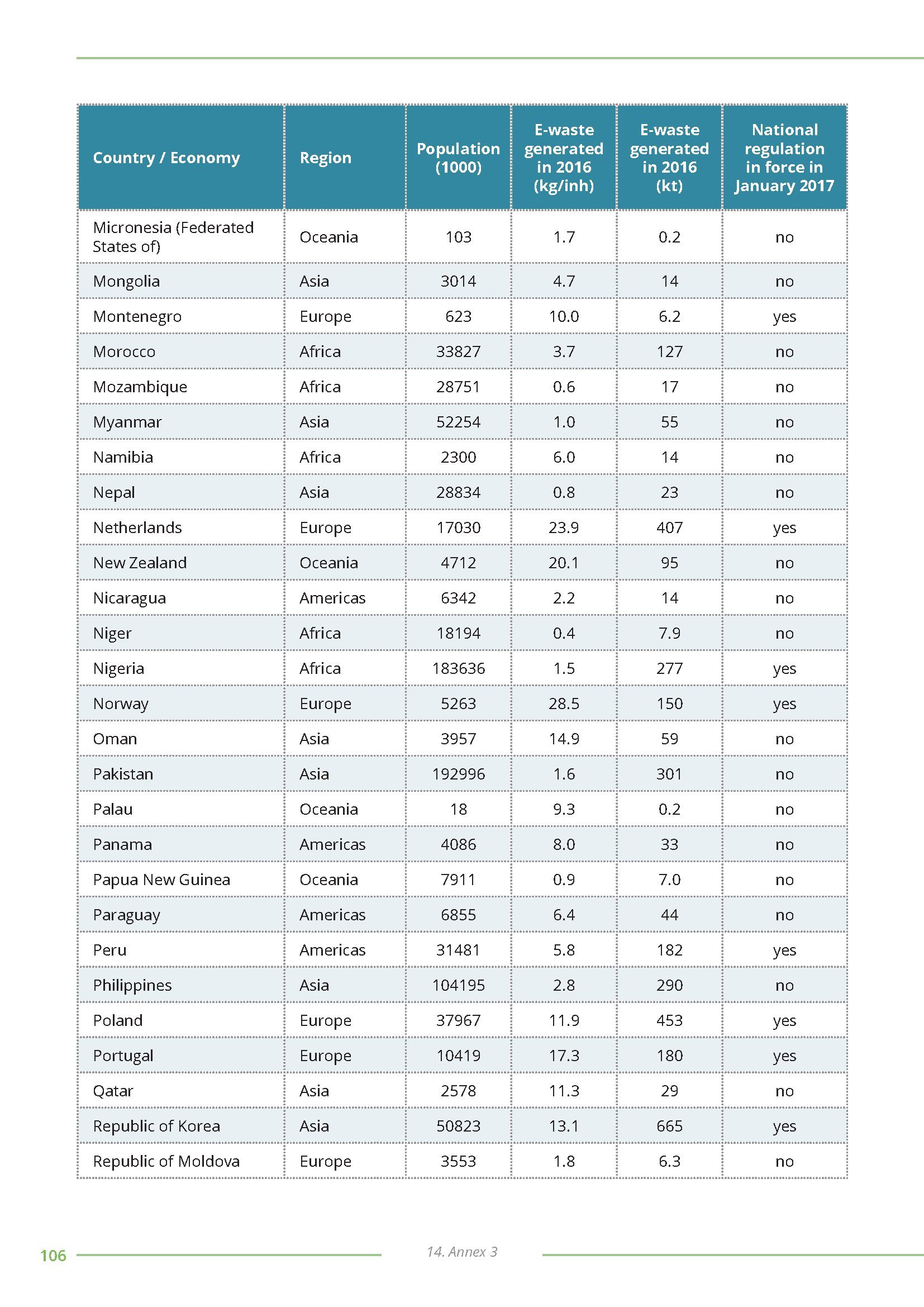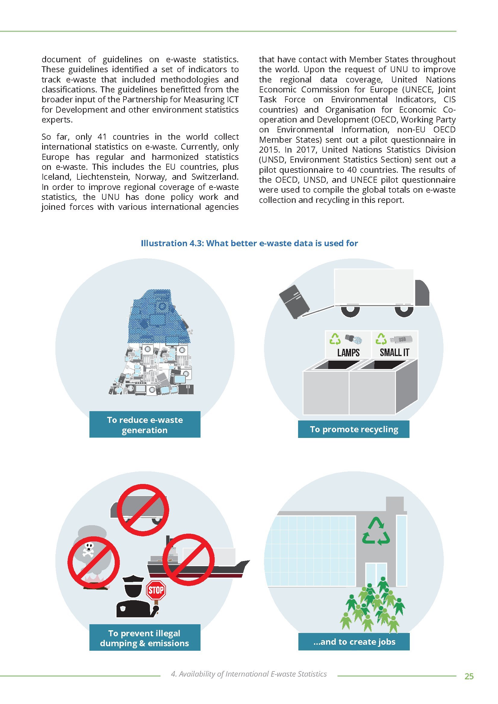 全球只有41个国家有官方的电子垃圾统计数据。在没有专门法律的国家,电子垃圾很可能被当作一般废物处理,而处理不当的风险非常高,还会排放毒素。好消息是,全球66%的人口生活在有电子垃圾管理法律的国家,比2014年的44%增长明显。