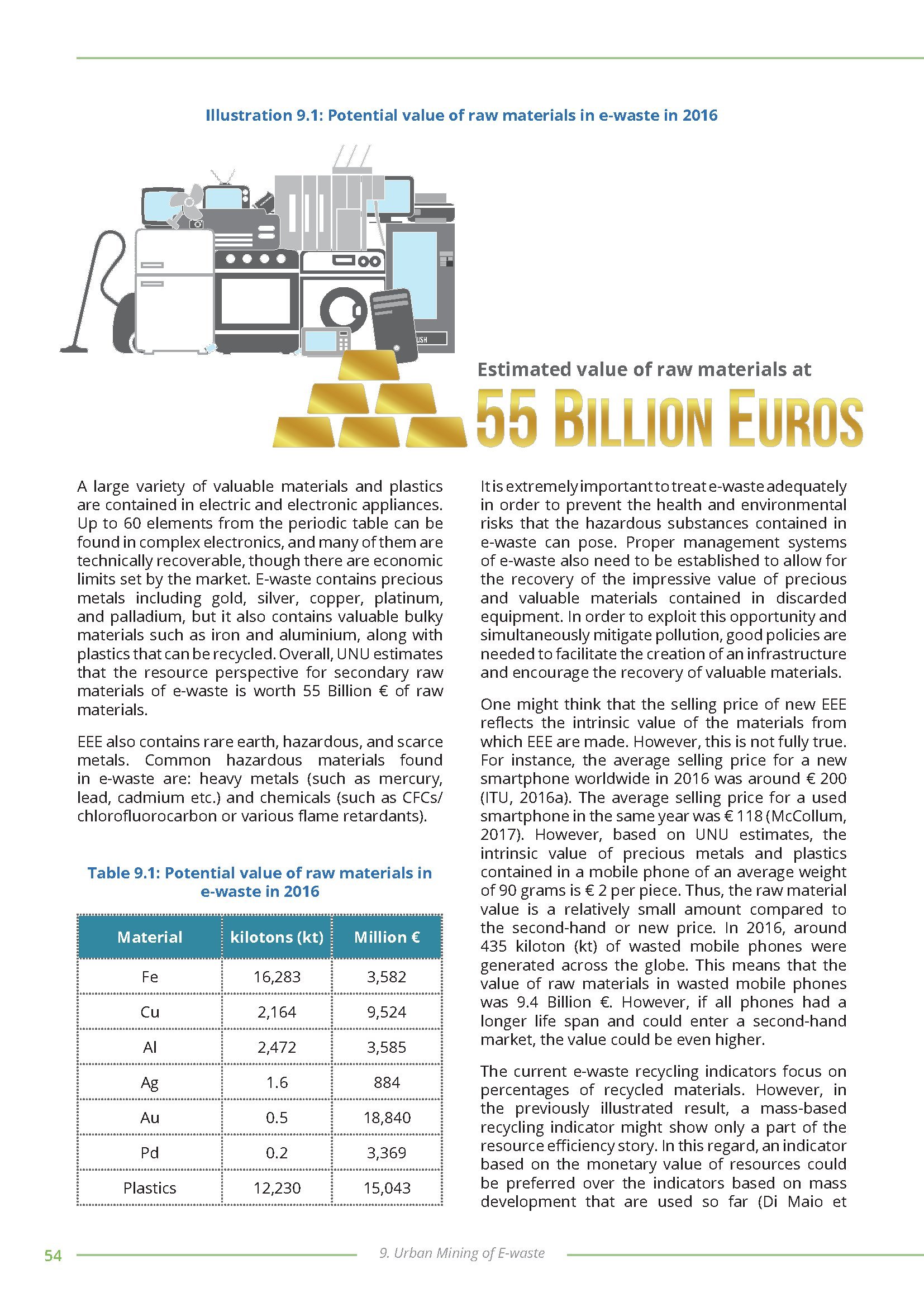 事实上,电子垃圾并不是一文不值的废物。2016年产生的电子垃圾中包含价值550亿欧元的可回收原材料。