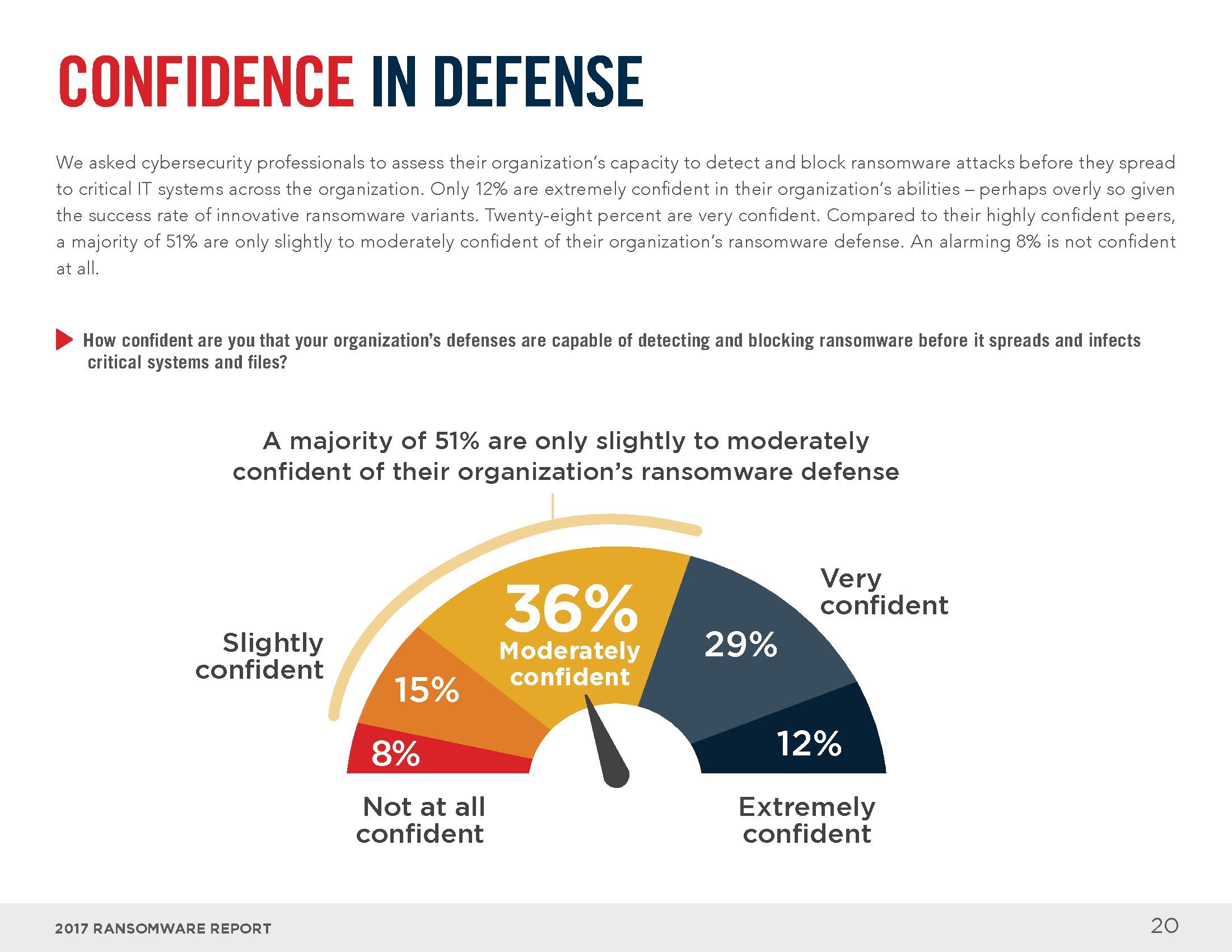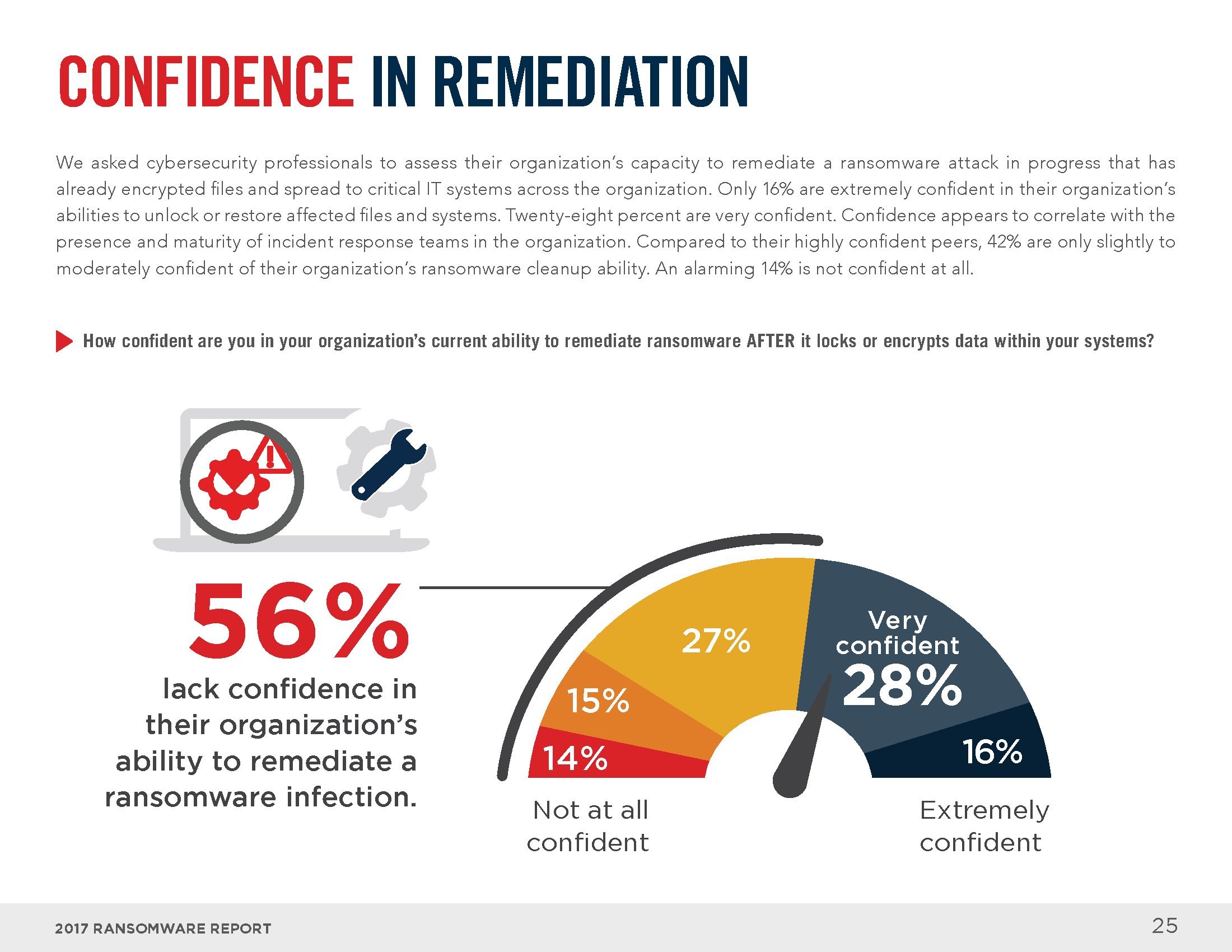 受访者认为用户培训师预防和阻止勒索软件的最有效措施(77%),其次是终端安全解决方案(73%)和修复操作系统(72%)。51%的受访者将企业防御勒索软件的信心评价为轻度或中度。