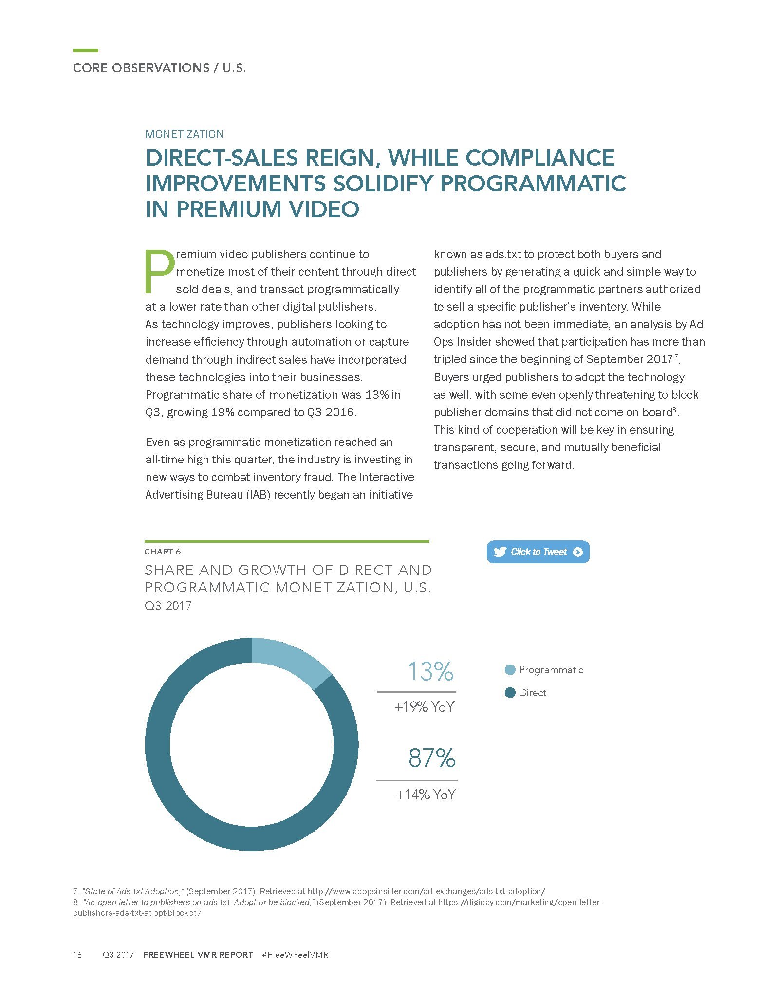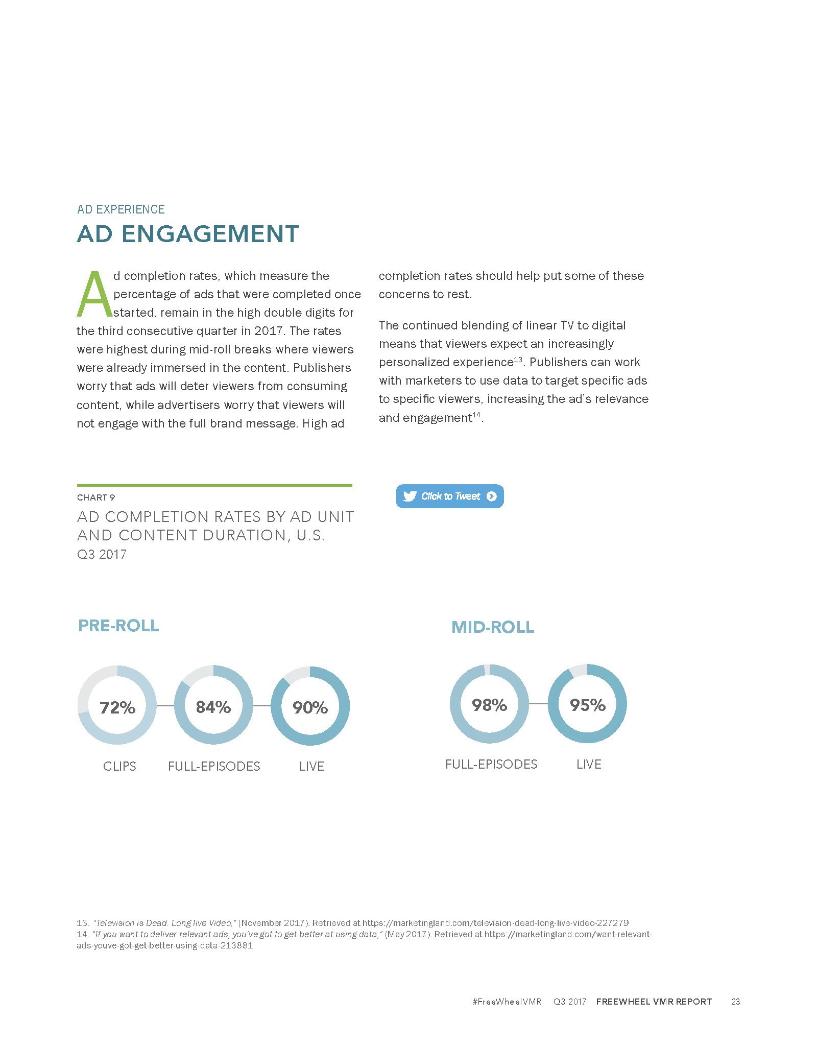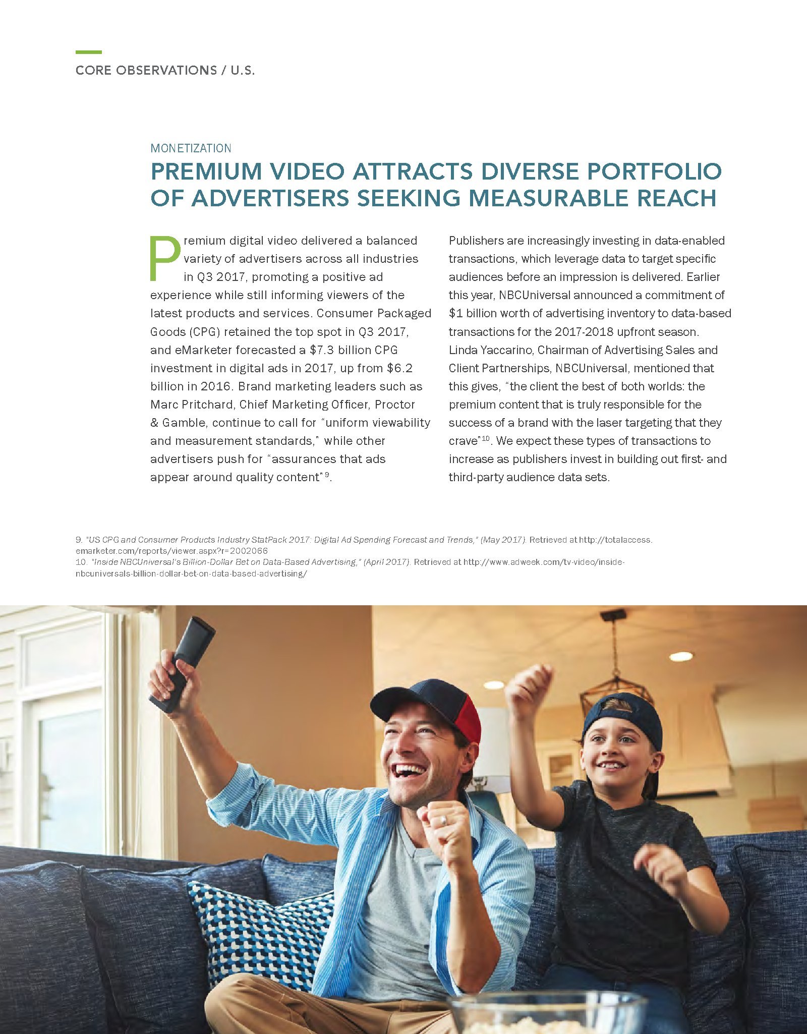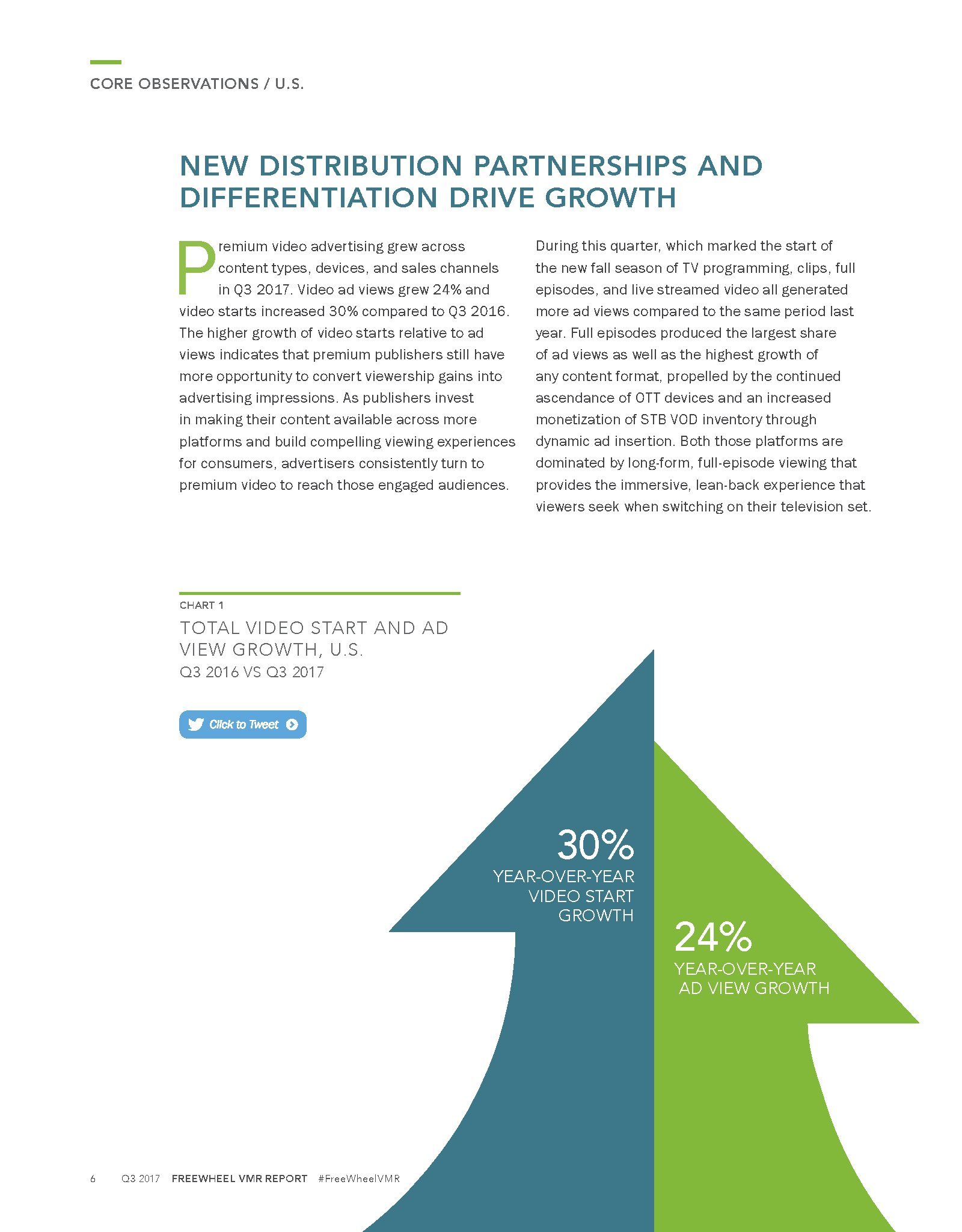 FreeWheel发布了“2017年第三季度网络视频广告报告”。谈到视频,观众有更多选择,在任何时间、任何地点、用各种渠道收看视频。广告主也有更多的渠道接触目标受众。但是,发行商也需要不断地创新,以应对日益激励的竞争格局。例如,发行商通过实验超短的6秒钟广告,改进广告模式、优化广告负载,以提高参与度等。FreeWheel在第三季度的报告中分析了优质视频广告发行商,因为他们致力于提供差异化的解决方案。