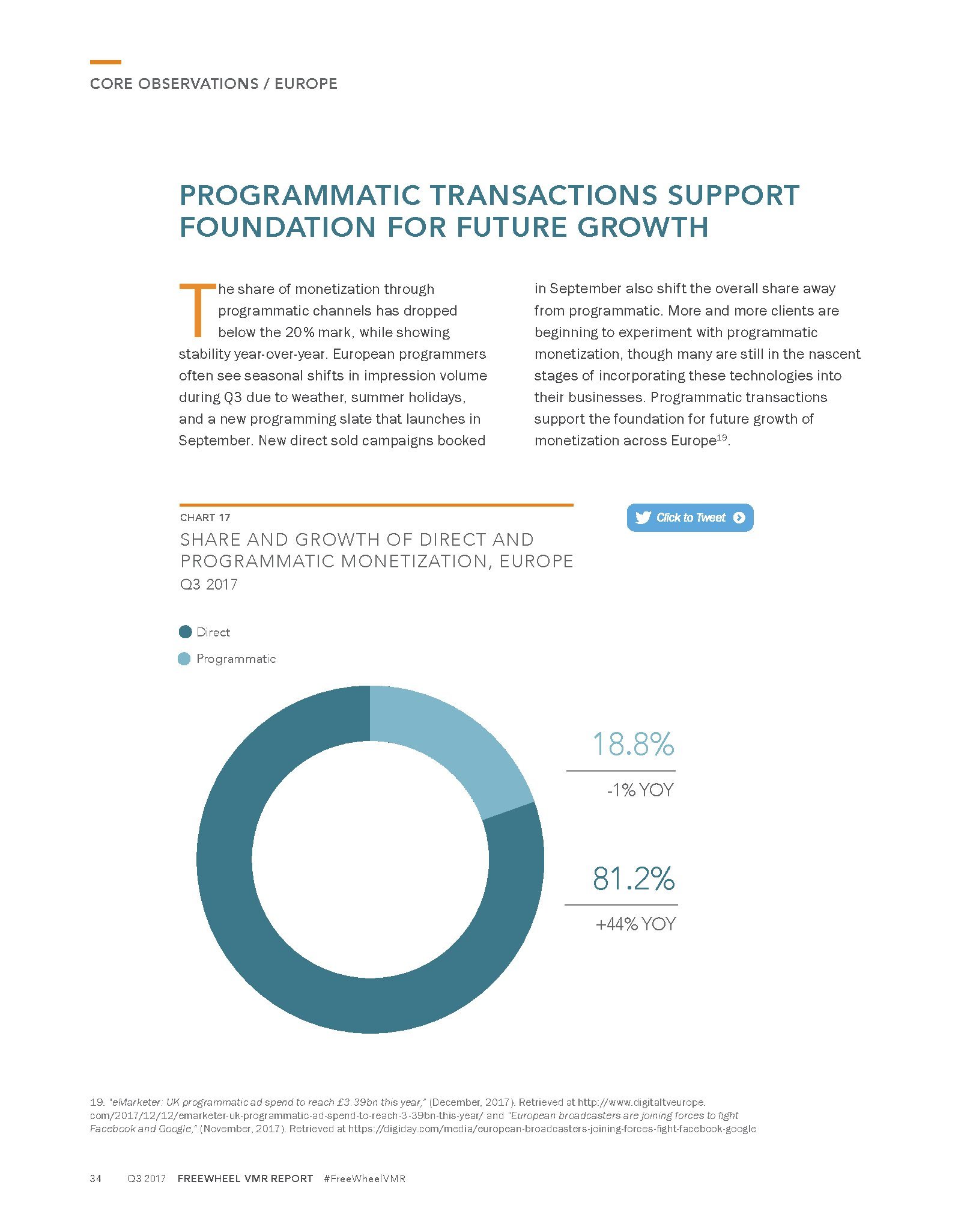广告程序化购买在发行商工具包中已经有稳固的地位,占第三季度广告收入的13%,同比增长19%。