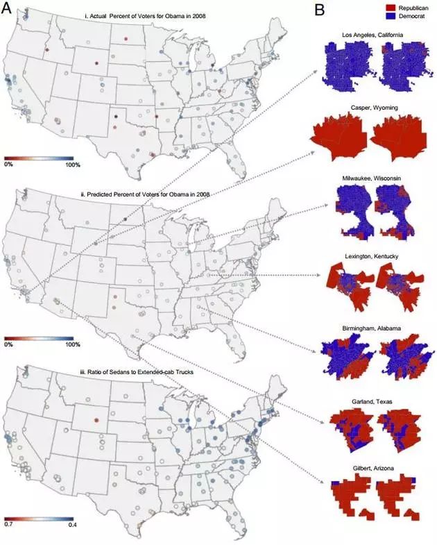 针对民主党和共和党选区的人们更喜欢轿车还是皮卡这些事,市场研究人员和政治分析师们已经研究了几十年。不过近日,斯坦福大学研究人员们通过一个雄心勃勃的项目——分析谷歌街景上的5000万张照片和地理位置数据——也得出了相同的结论。在新近发展的人工智能技术的帮助下,研究人员能够分析大量的图像、提取可以进行排序和挖掘的数据来预测一些事情,比如某个社区的收入水平、政治倾向、购物习惯等。