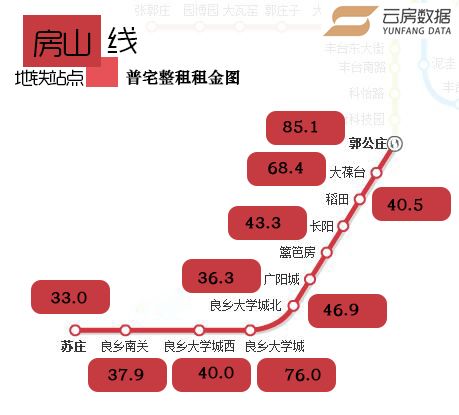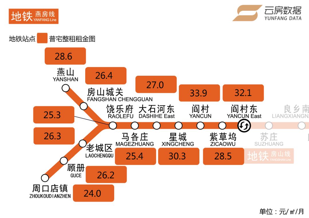 租金最贵地铁站:阎村(33.9元/㎡/月)