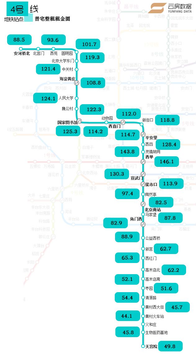 租金最贵地铁站:郭公庄(85.1元/㎡/月)