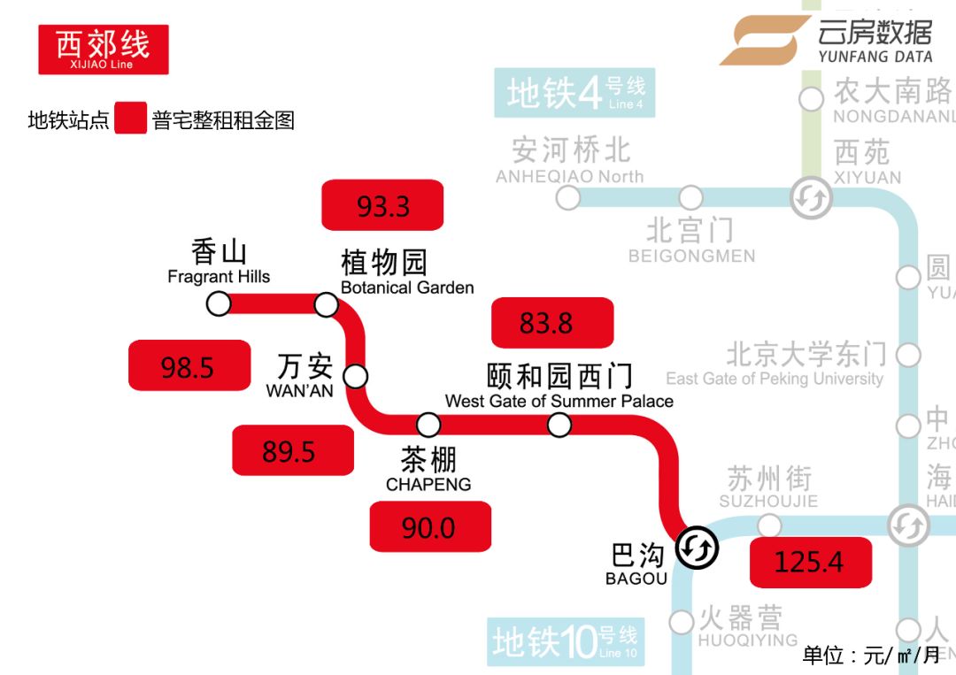 租金最低地铁站:颐和园西门(83.8元/㎡/月)